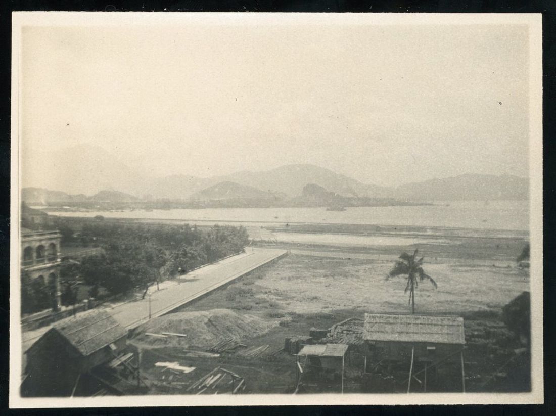 1920年代九龍尖沙咀金馬侖道小照片. 遠處可見黃埔船塢. 尺寸: 7.5x10cm