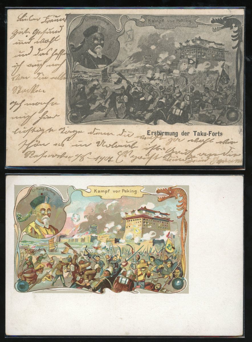 1900 Two postcards of the Eight-Nation Allied Forces' invasion of China.