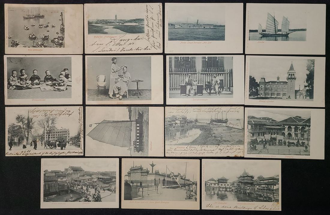 1900s Postcards from Shanghai, published by Max Nossler & Co., Nanjing Road. No: 194-197, 200-205, 207, 208, 211, 213, 214. Total 15 cards.