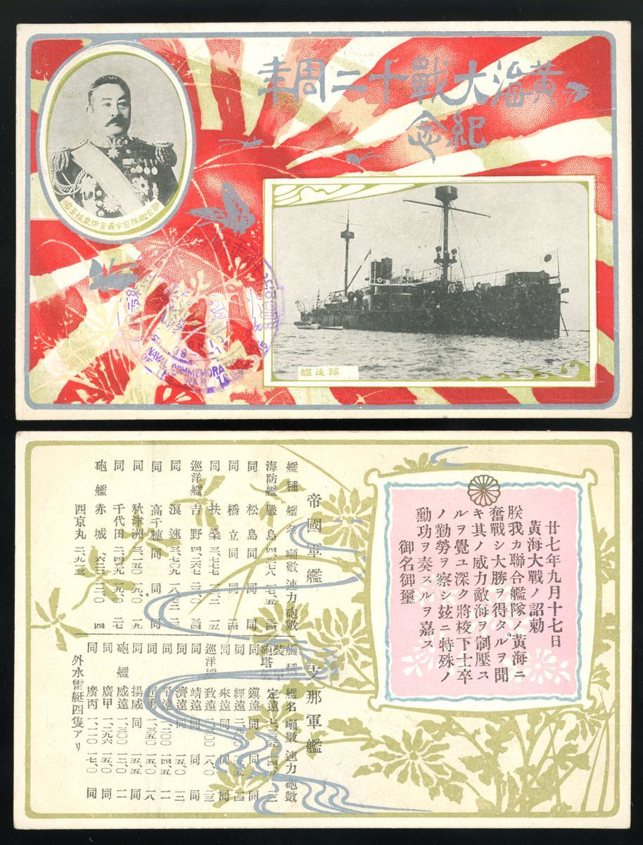 1906 two postcards printed in Japan for commemorate the 12th anniversary of the Sino-Japanese Yellow Sea War.