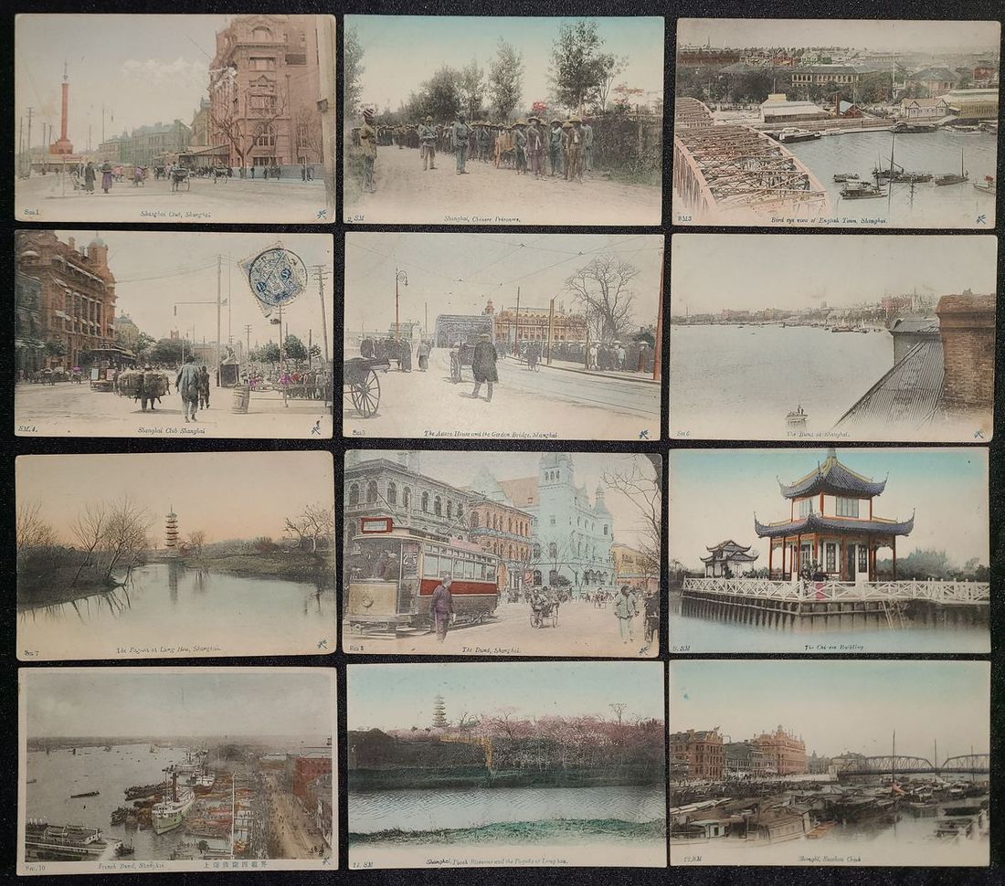 1910年代日本出版蜻蜓商標 (於明信片右下角)出版的上海明信片共12枚, 編號Sm在數字左或右旁. 編號: Sm1-12.