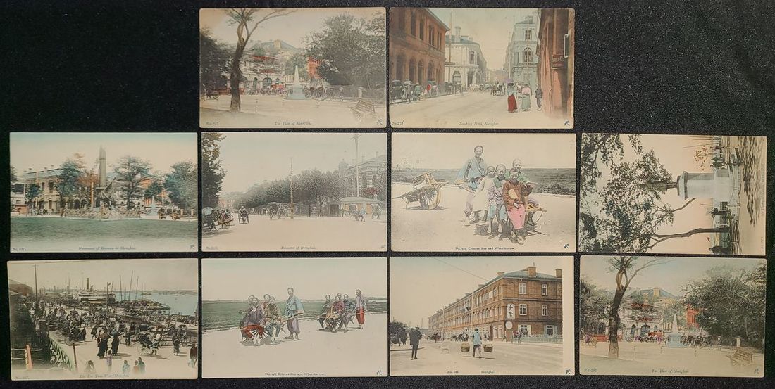 1910年代日本出版蜻蜓商標 (於明信片右下角)出版的上海明信片共10枚, 編號: 231, 234,237, 238, 240, 243, 246, 247, 248, 251.