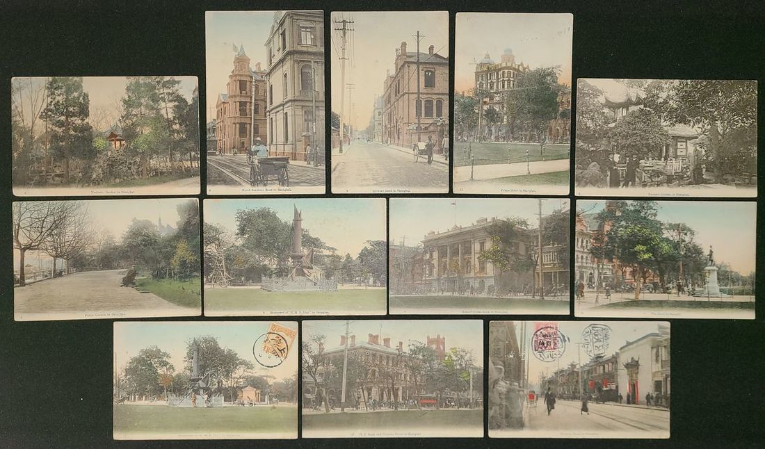 1910s Shanghai scenery postcard with small blue letters, printed in Japan; No. 2-4, 6-12, 17, 19.Total 12 cards.