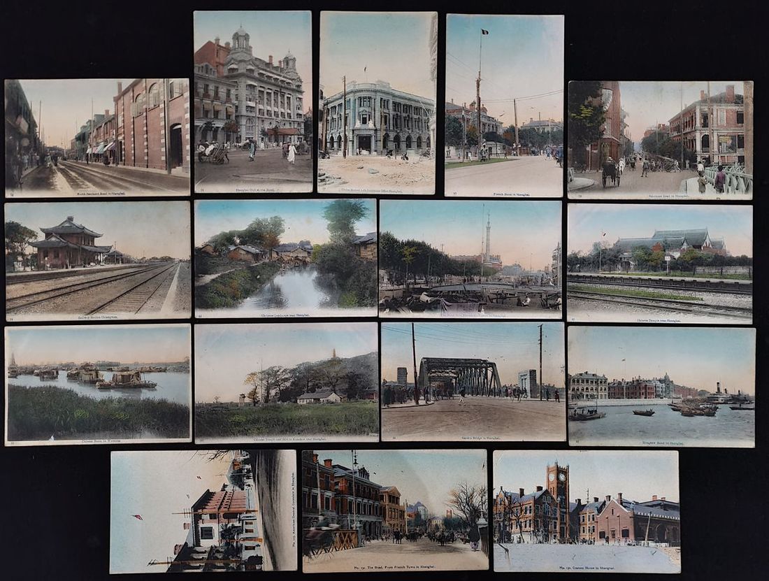 1910s Shanghai scenery postcard with small blue letters, printed in Japan; No.73, 75-78, 80, 83, 86-90, 95, 115, 130, 131. Total 16 cards.
