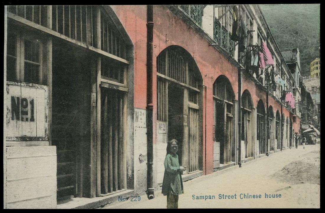 1910s postcard of Sampan Street in Wan Chai, which was the famous "Big Number" red light district a hundred years ago.