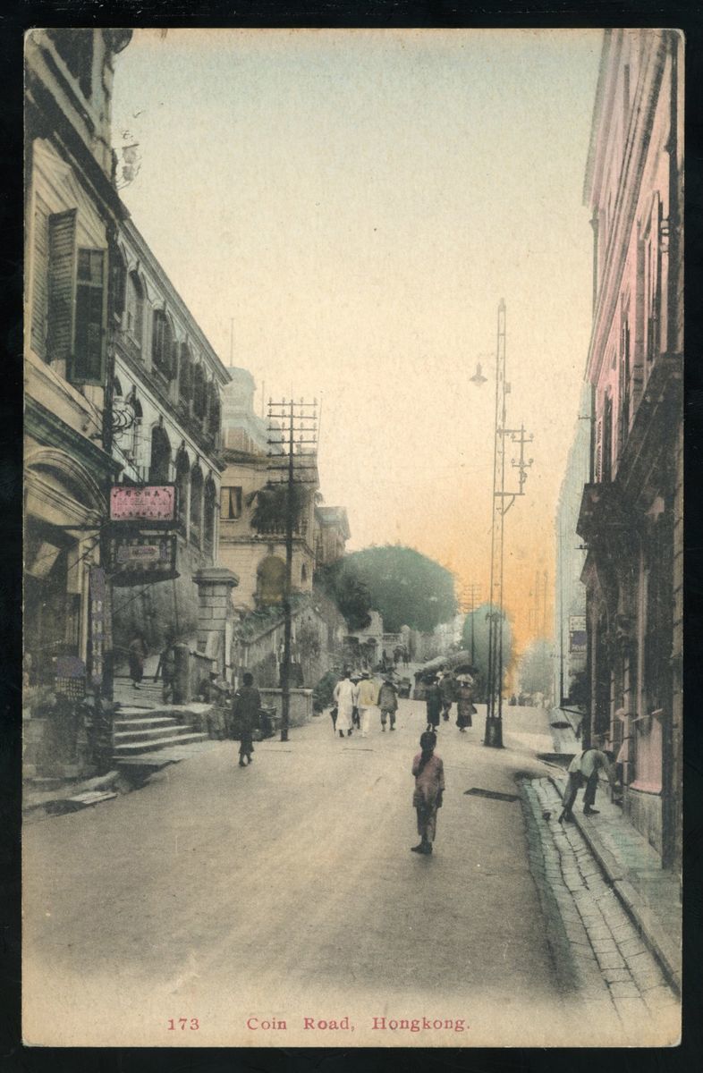 1910s-1920s Postcard of Caine Road in the Mid-levels of Hong Kong Island, with Kom Tong Hall on the left and Castle Road, which is not yet open to traffic.