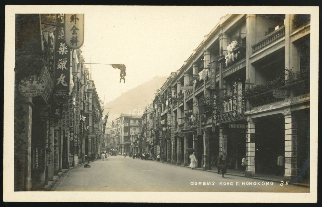 1920-30s real photo postcard of Queen's Road East, Wan Chai, Hong Kong Island.