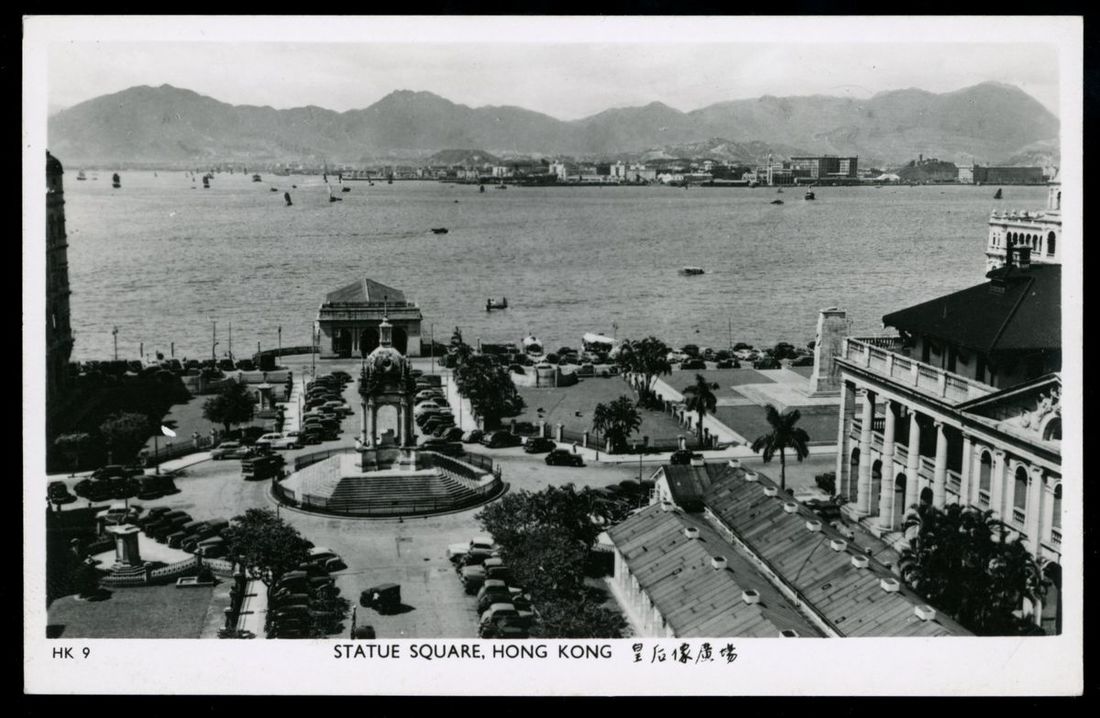 1950s RPPC of the Statue Squar of Queens in Central District, Hong Kong, produced by Tuck's, UK.