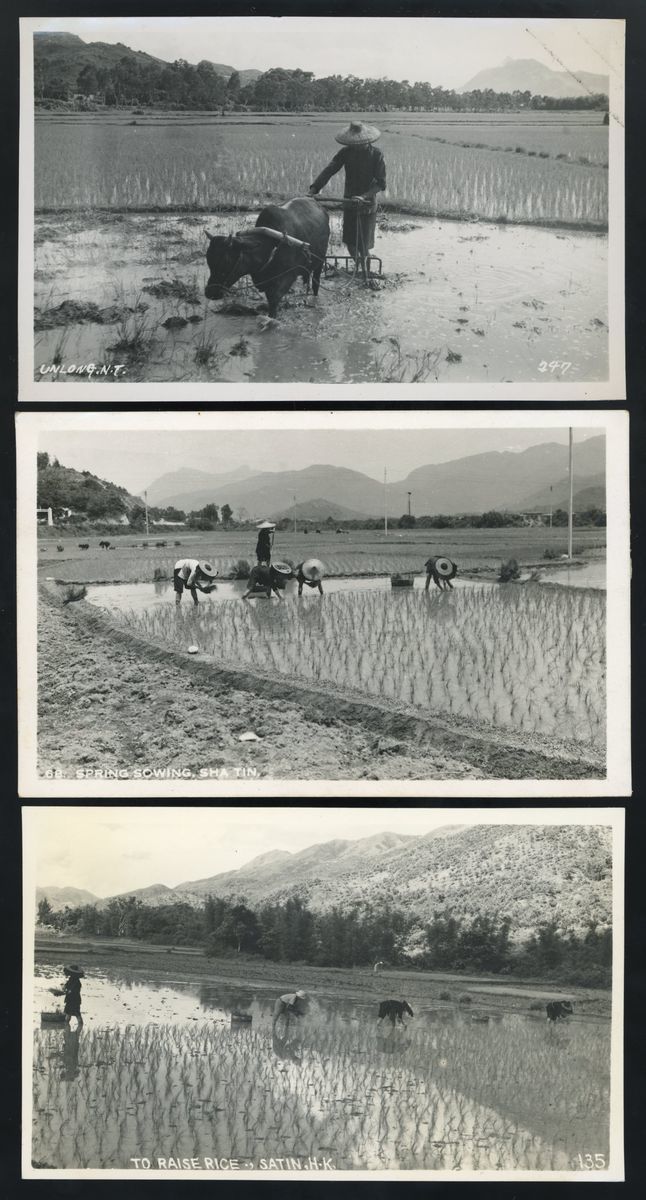 1950年代香港新界元朗及沙田之耕作情景實照明信片共三枚.