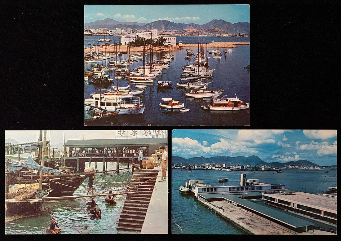 1960s two postcards of the Hong Kong Island Ferry Terminals, one for the Star Ferry Pier, one for the Sham Shui Po Pier and one for the Royal Yacht Club at Causeway Bay.