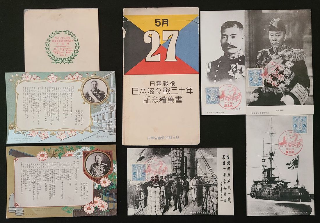 1907-1937 two sets of postcards commemorating the Russian-Japanese naval battle.