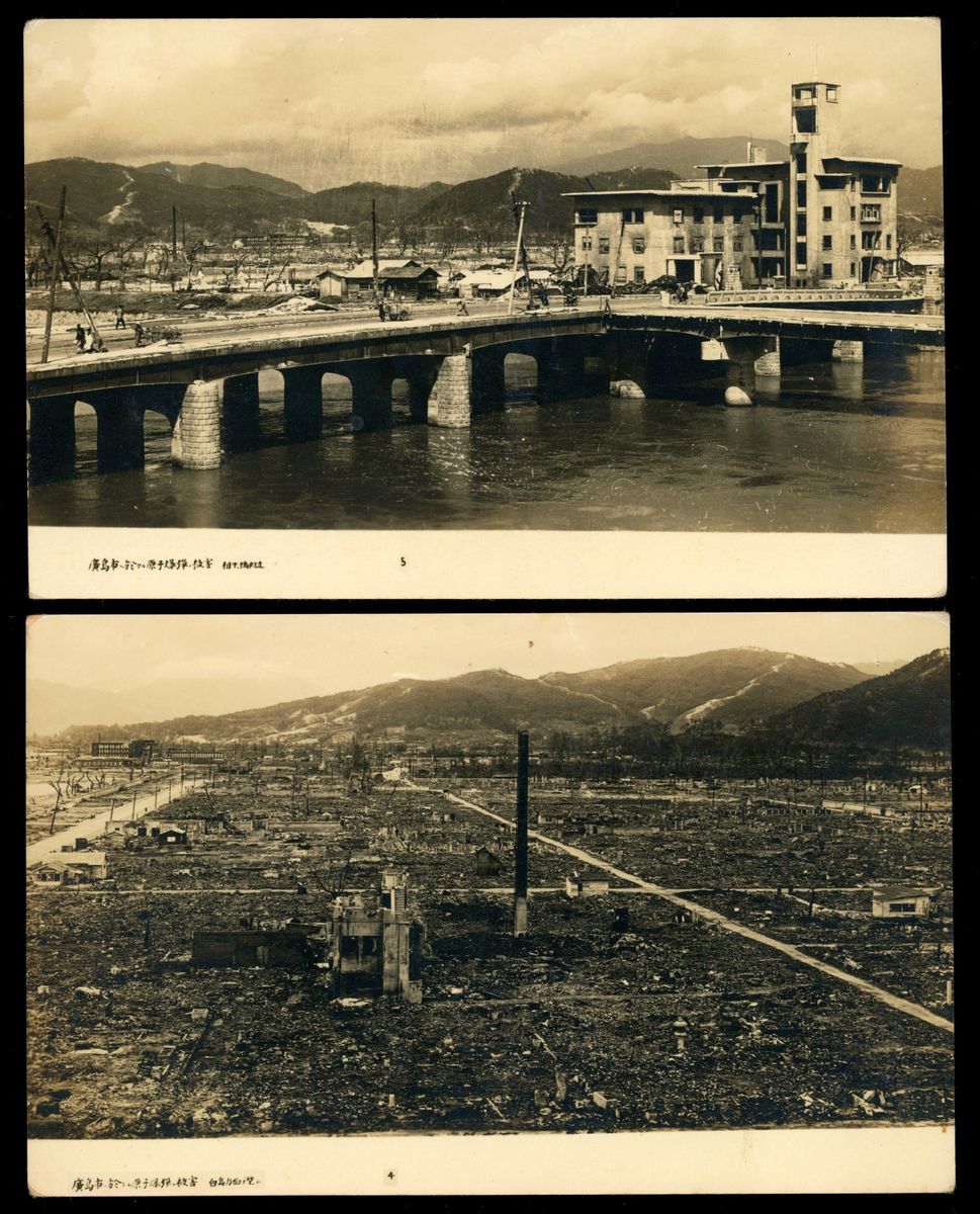 1940年代日本廣島遭原子彈轟炸後景像之實照明信片两件