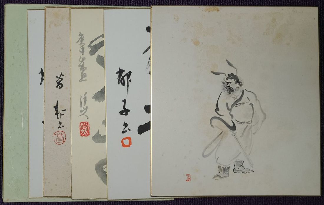 1970-1980年代日本畫 "鍾馗" 一幅及日本書法五幅. 每幅尺寸: 24x27cm