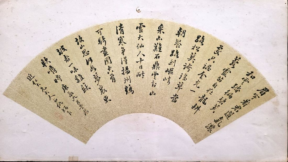 1880 Qiu Bingtai's running script on fan, ink on paper, with one seal. Size: 25x54cm
