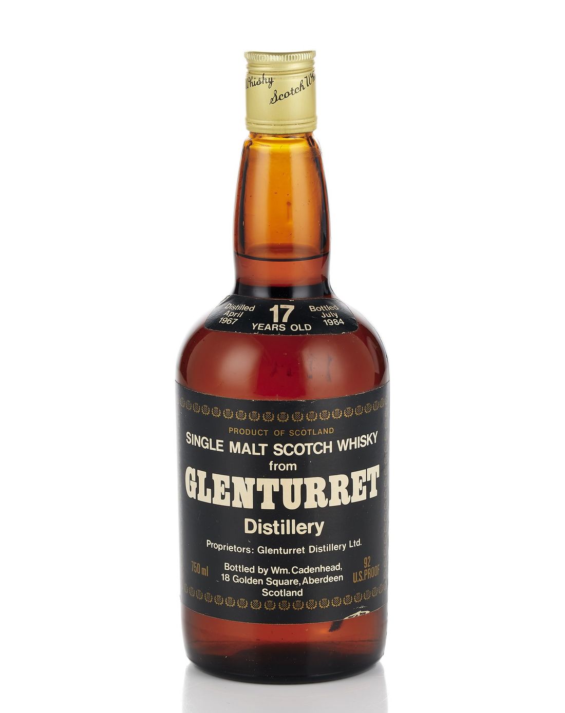 Distilled April 1967, Bottled July 1984. Bottled by WM. Cadenhead, 18 Golden Square, Aberdeen