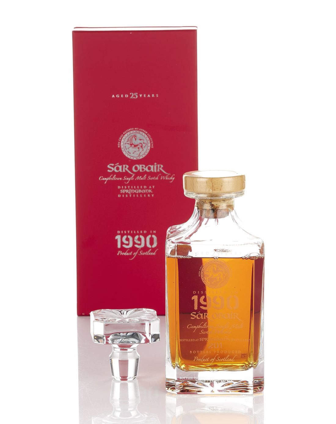One of 201. In original presentation box, pen marked on top section, accompanied by stopper. Engraved labelling. Level: top shoulder. 700ml. Single Malt., 53.3% volume.