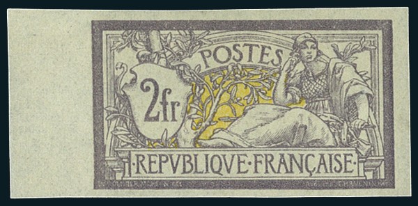1900, 2fr. violet and yellow, an imperforate example with sheet-margin at left. Very fine. Maury 122 (var).