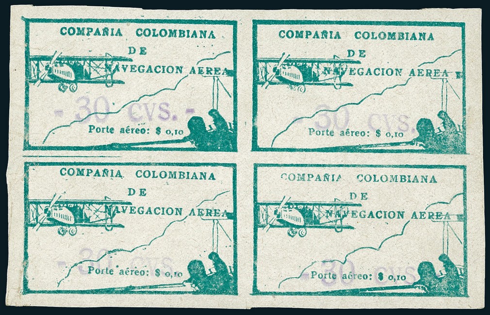 1920, 30c. on 10c. green, unused without gum as issued, block of four with large margins all around. Slight wrinkles at right, otherwise a very fine and rare multiple. Gebauer 16.