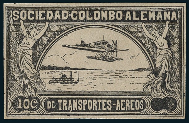 1920, 10c. light rose and black, a visually impressive essay, featuring a crisp impression enabling to identify several flaws as colourless "hairline" in upper right corner, showing value tablet in black with absence of denomination at bottom right. Surface rubbing on reverse, absolutely not detracting. The only example recorded of an essay derived from this design. A very desirable rarity of this issue. Ex Philip G. Cole.