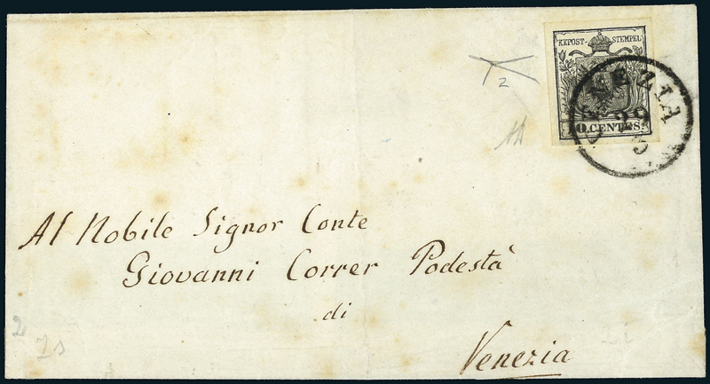 1850, lettera da Venezia del 29 marzo per città con 10 c. (2) isolato. Firmata A. Diena e Bottacchi.