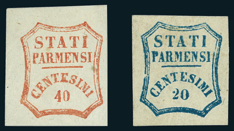 1859, Governo Provvisorio, 20 c. azzurro (15) e 40 c. vermiglio chiaro (17a), i due esemplari nuovi con gomma. Cert. Bolaffi.