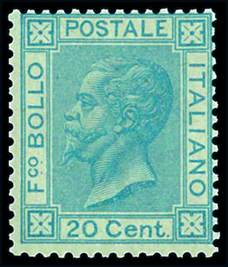 1867, 20 c. azzurro chiaro (T26b), nuovo con gomma integra, freschissimo. Cert. Colla, firmato Oliva.