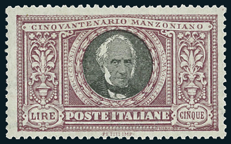 1923, Manzoni, serie completa (151-156), molto ben centrata, nuova con gomma integra. il 5 l. è corredato da cert. Enzo Diena e firmato G. Bolaffi.