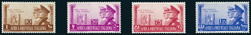 1941, Fratellanza d'Armi, cartella del valore al centro, serie completa non emessa (41-44), nuova con gomma integra e buona centratura. Firmati A. e G. Bolaffi.
