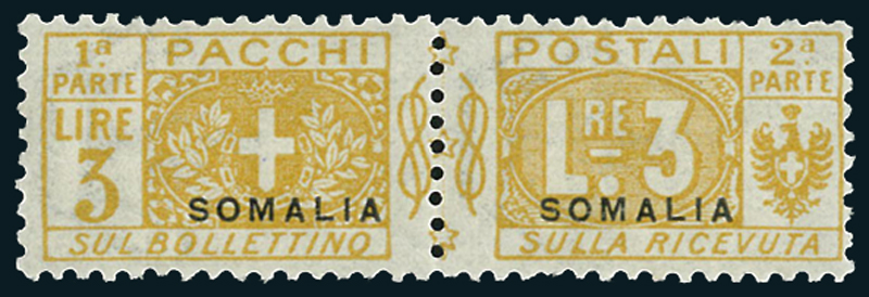 Pacchi. 1923, 25 c. a 4 l. (15-20), serie completa nuova con gomma integra.