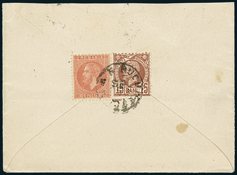 1880-86, Second Bucharest Printing, group of four covers with 5b. and 10b. tied by small Stolnici station poste-restante c.d.s. in blue, one to Paris bearing 10b. in mixed franking with 1885 15b., one 25c. indigo single franking, and the fourth with 5b. and 10b. (2). Mi. 50, 50b, 51, 52a, 53, 65.