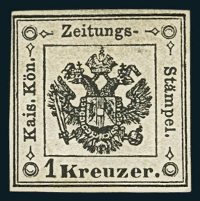 1858-59, segnatasse per giornali, 1 kr. nero (2), fresco con gomma originale. Cert. Enzo Diena ed A. Bolaffi, firmato Em. Diena.