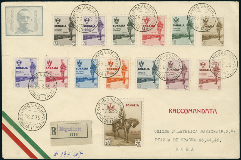 1935, "Visita del Re" serie completa (S. 40) su raccomandata viaggiata per Roma. Molto bella.