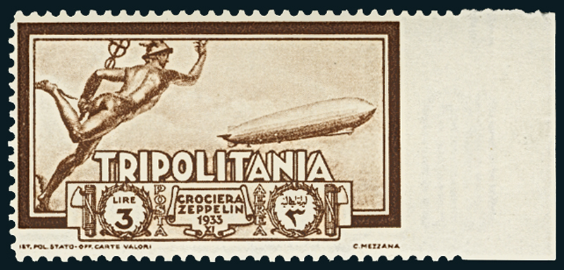 1933, Posta Aerea, Zeppelin 3 l bruno, non dentellato a destra (22a), bordo di foglio.