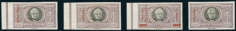 1924, Manzoni, giro completo di 24 prove d'archivio non dentellate delle quattro Colonie. Insieme difficile e raro.