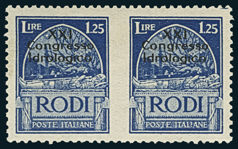 1930, Congresso Idrologico, 1,25 l. azzurro, coppia non dentellata in mezzo (18d). Firmata Oliva.