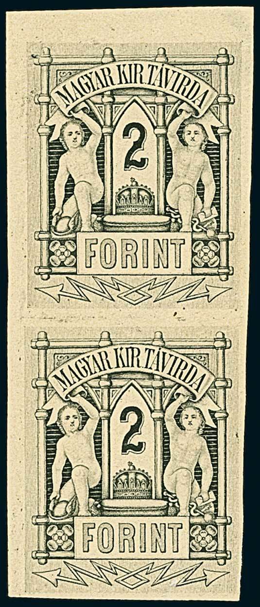 Telegrams, Telegraph & Telephone Stamps - The Professor Shaul Ladany Collection, Part IIHungaryTelegraph Stamps1873-74, group of 55 stamps including all values from both litho and engraved issues, with some duplication and perforation varieties, cancellations and engraved 2ft. plate proofs in pair. Photo