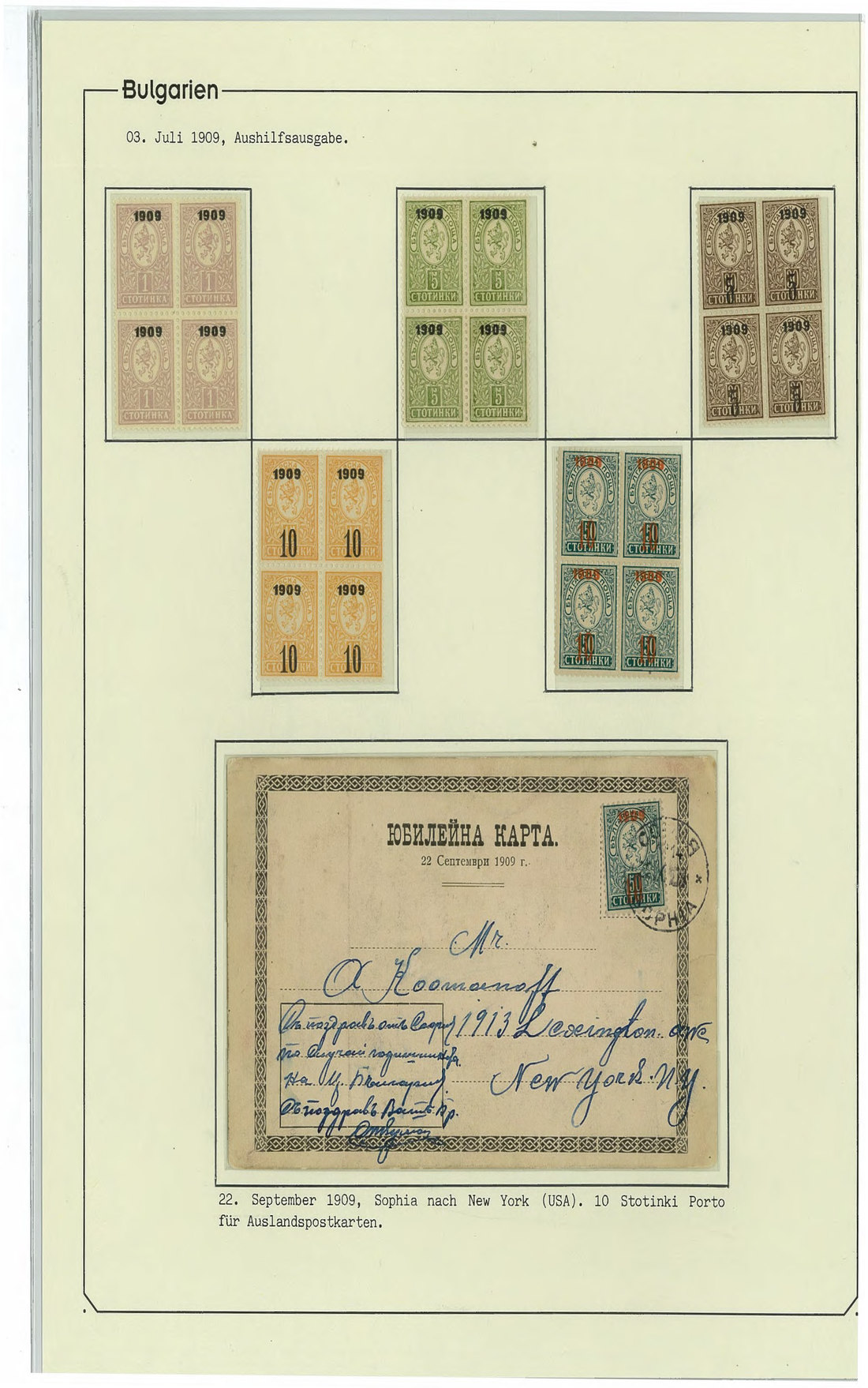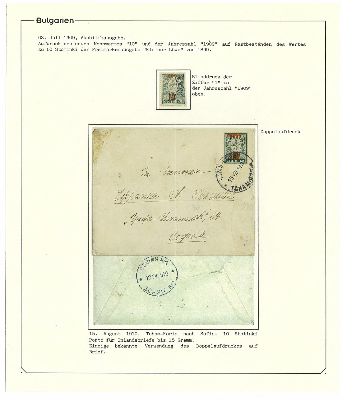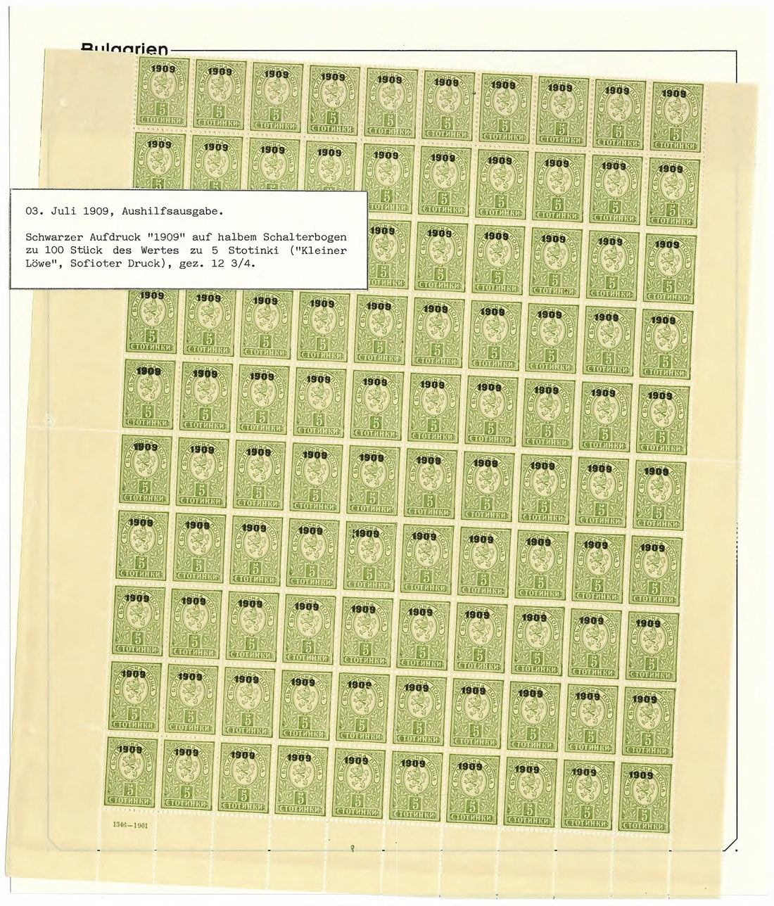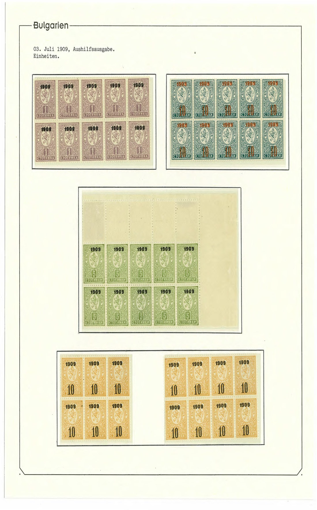BulgariaLater Issues1909, "Small Lions" Overprinted Issue. A comprehensive collection comprising nearly 400 stamps including part sheets and numerous varieties, as well as 24 covers and one very unusual newspaper, maily mail sent abroad, also including varieties with "1990" & "10" on 50st. in multiple, 10 on 50st. double surcharge on two items. A rare assembly which deserves an accurate inspection. Mi. 71-75. Photo