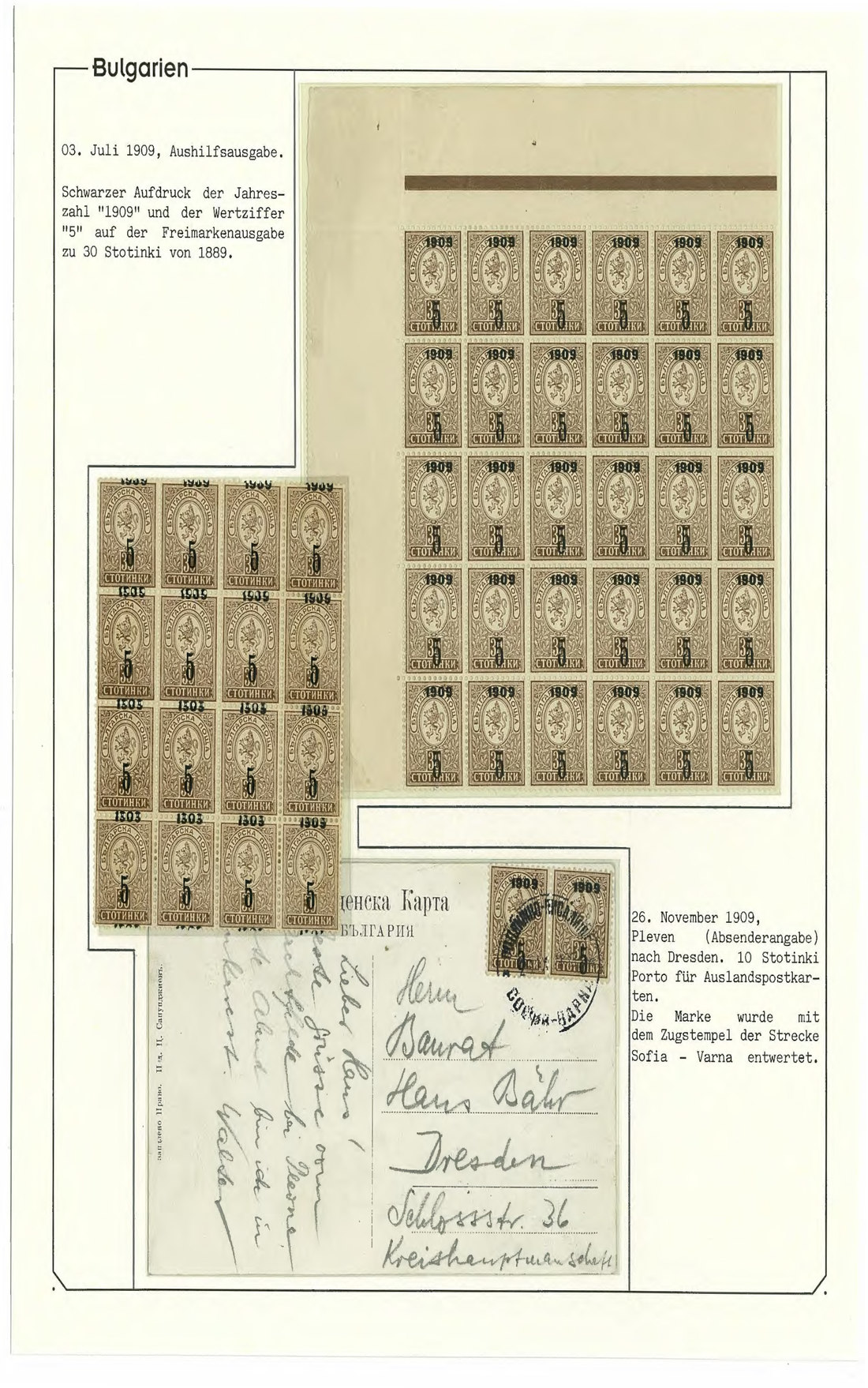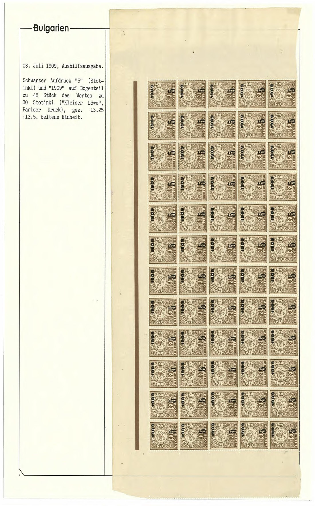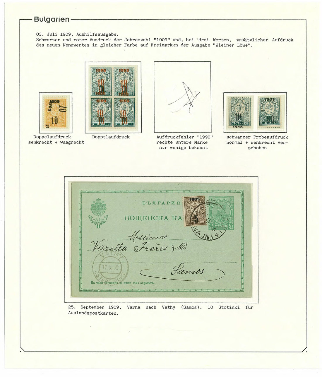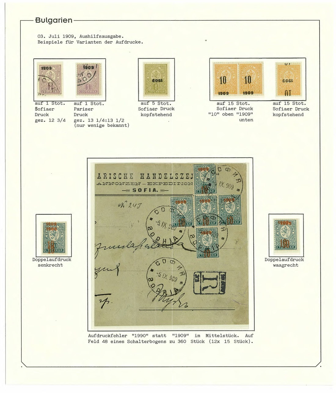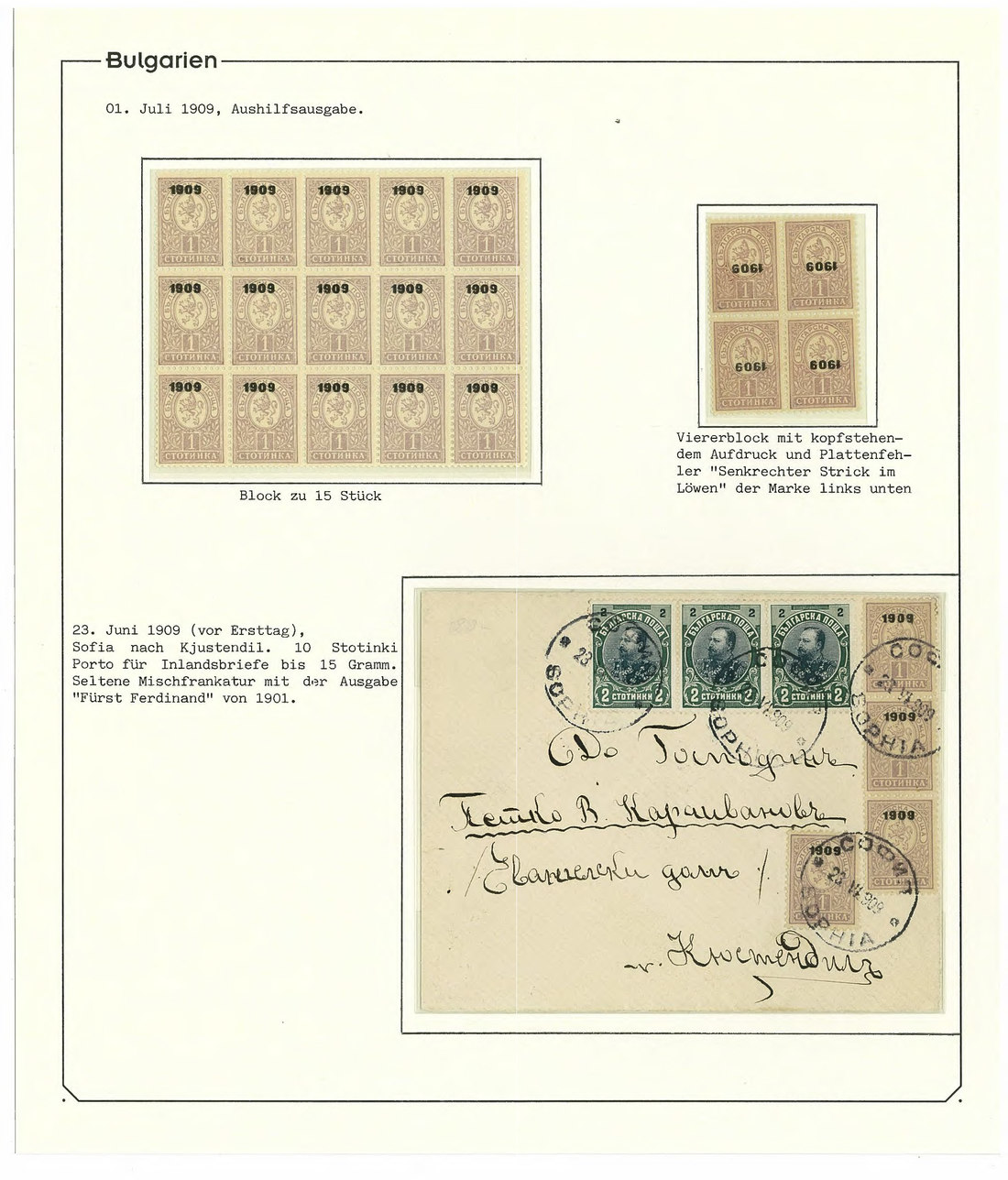 BulgariaLater Issues1909, "Small Lions" Overprinted Issue. A comprehensive collection comprising nearly 400 stamps including part sheets and numerous varieties, as well as 24 covers and one very unusual newspaper, maily mail sent abroad, also including varieties with "1990" & "10" on 50st. in multiple, 10 on 50st. double surcharge on two items. A rare assembly which deserves an accurate inspection. Mi. 71-75. Photo