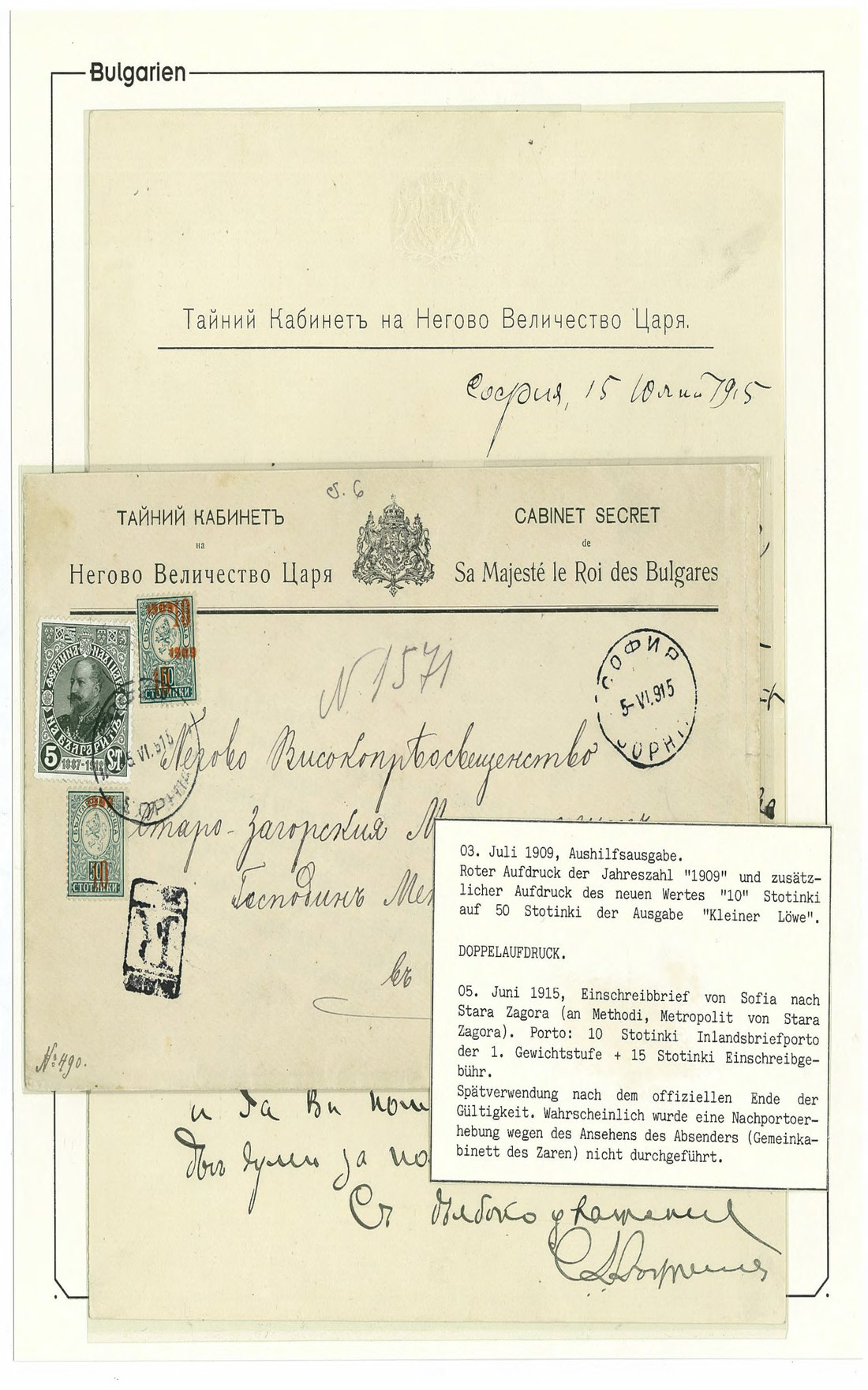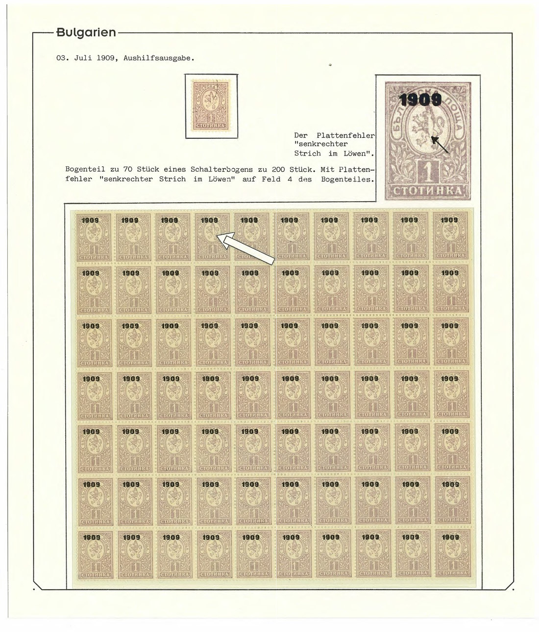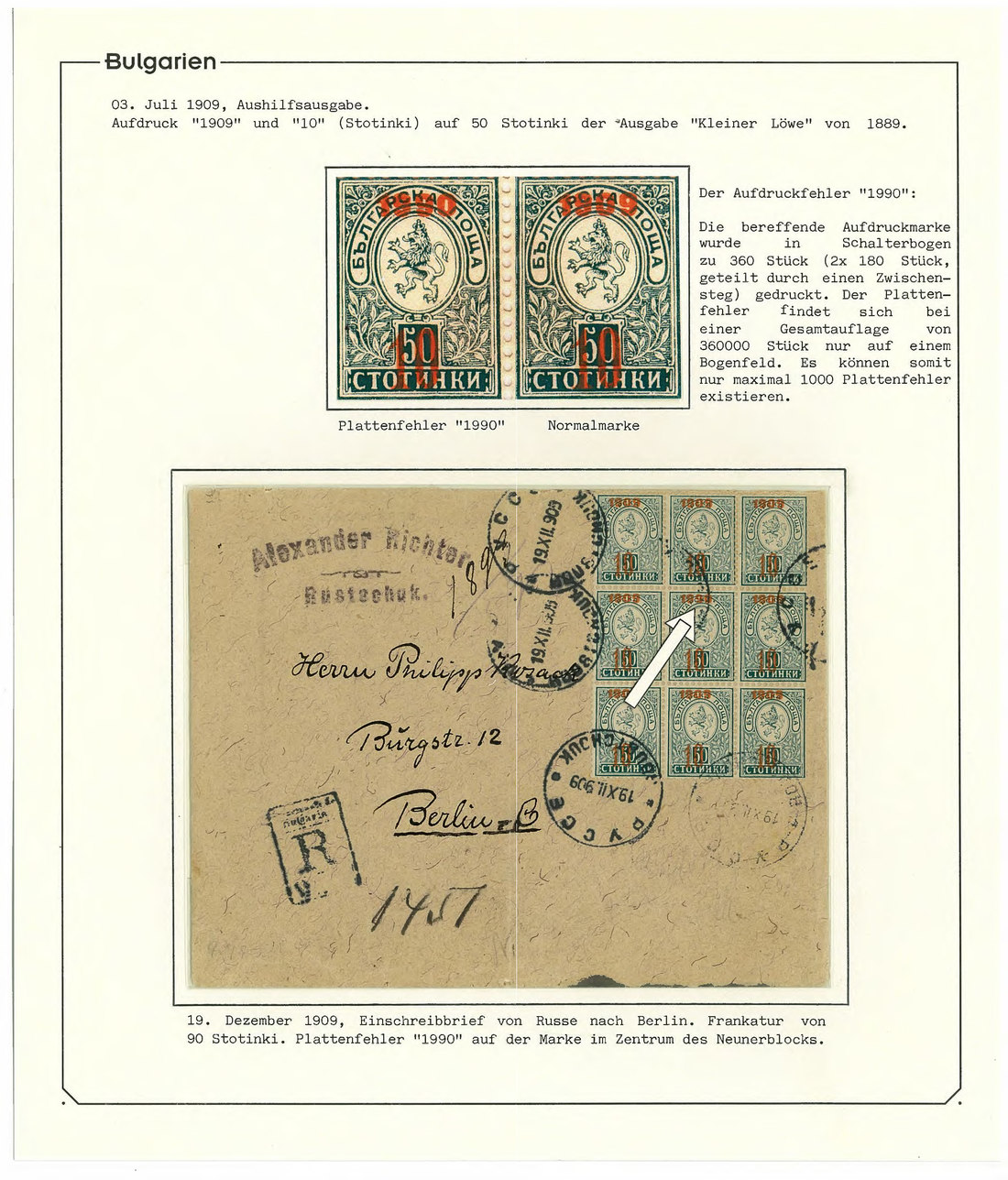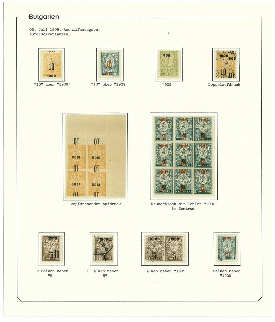 BulgariaLater Issues1909, "Small Lions" Overprinted Issue. A comprehensive collection comprising nearly 400 stamps including part sheets and numerous varieties, as well as 24 covers and one very unusual newspaper, maily mail sent abroad, also including varieties with "1990" & "10" on 50st. in multiple, 10 on 50st. double surcharge on two items. A rare assembly which deserves an accurate inspection. Mi. 71-75. Photo