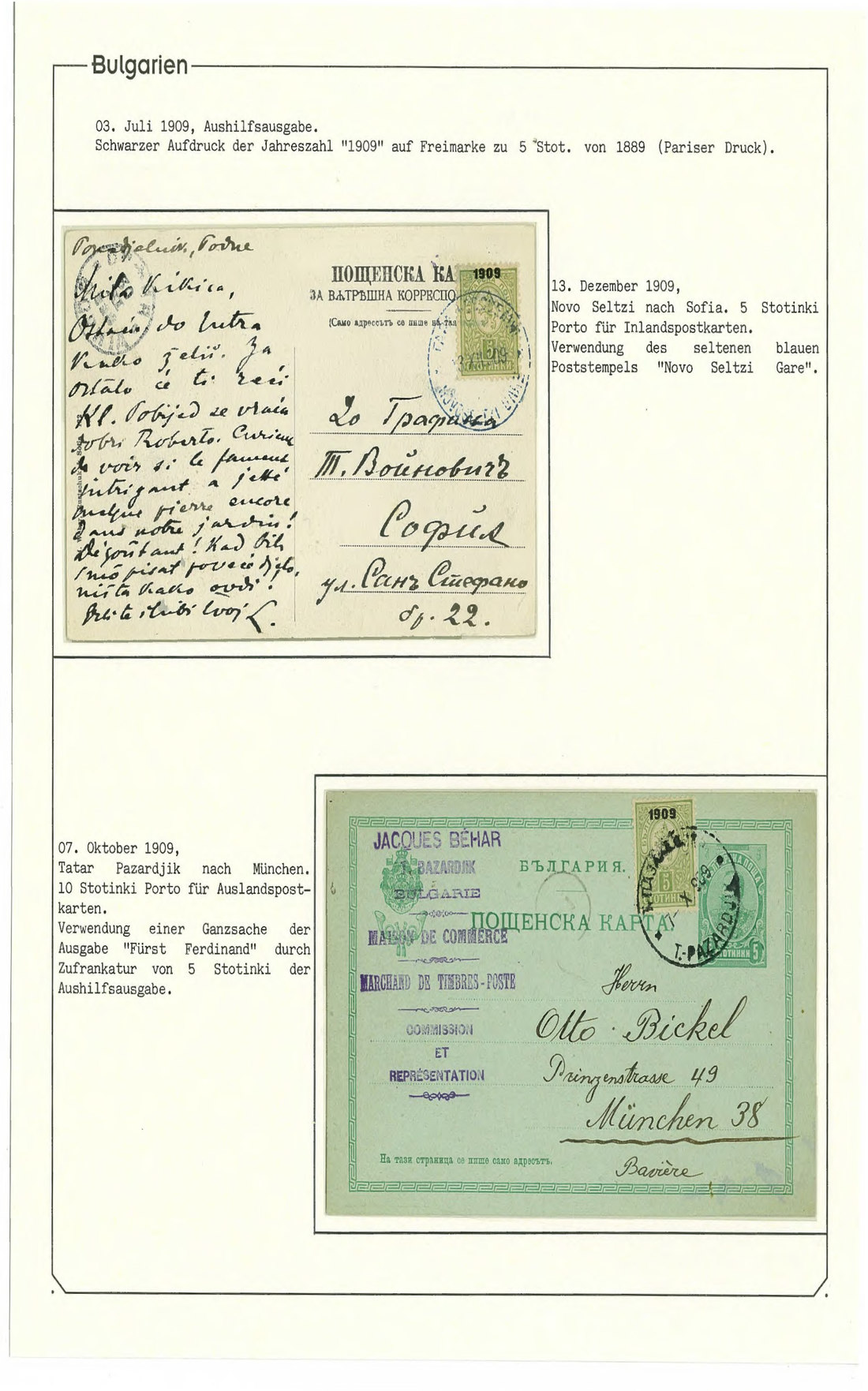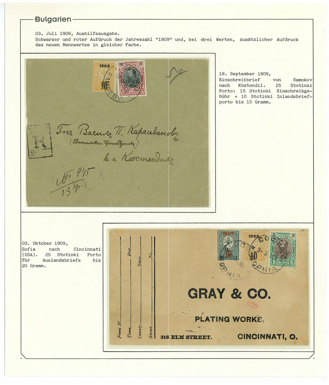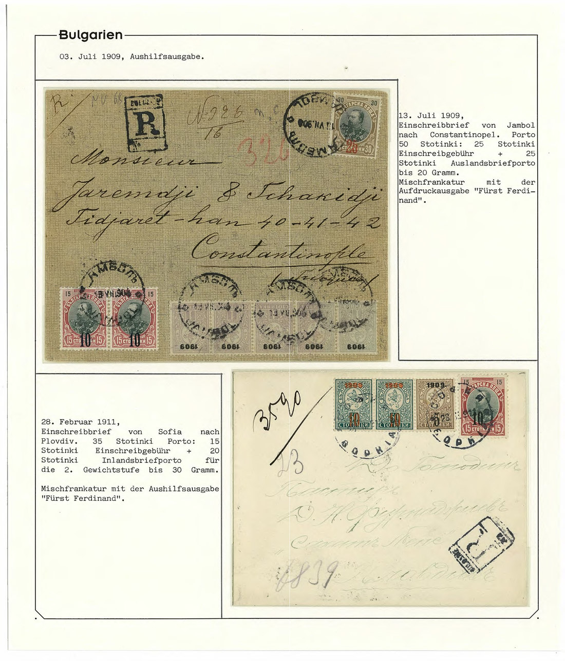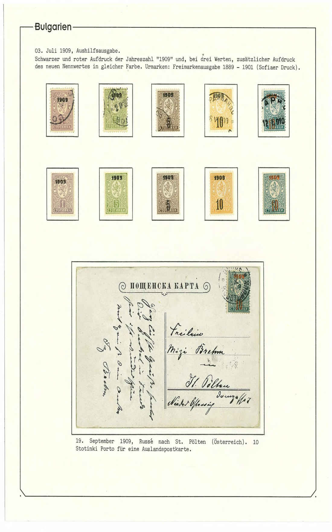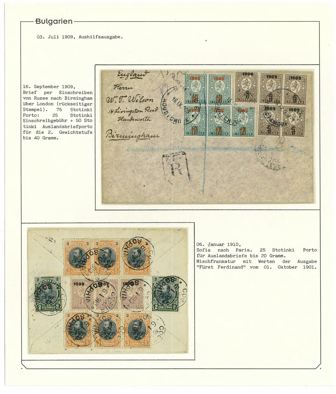 BulgariaLater Issues1909, "Small Lions" Overprinted Issue. A comprehensive collection comprising nearly 400 stamps including part sheets and numerous varieties, as well as 24 covers and one very unusual newspaper, maily mail sent abroad, also including varieties with "1990" & "10" on 50st. in multiple, 10 on 50st. double surcharge on two items. A rare assembly which deserves an accurate inspection. Mi. 71-75. Photo