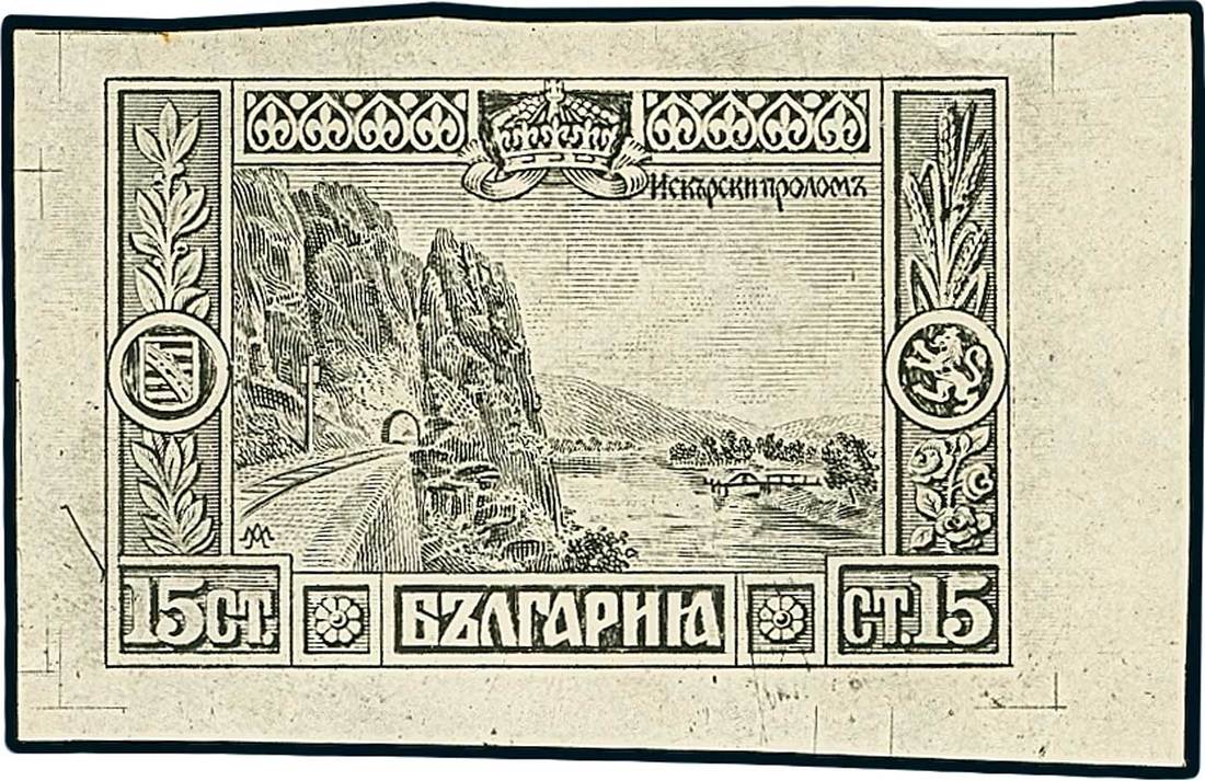 BulgariaLater Issues1911, Isker River, 15st. black, engraved proof featuring enlarged design. Very rare. Photo