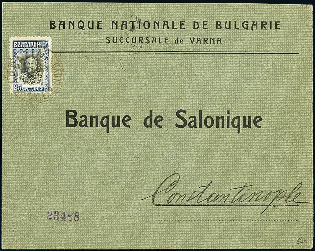 BulgariaMaritime MailAustrian Maritime Mail1913, Aug. 13. Cover from Varna to Constantinople franked by 1911 25st. with perfin of the National bank, tied by "Abbazia/Österr. Lloyd" c.d.s. Signed Todd. Mi. 84. Ex Kohane. Photo