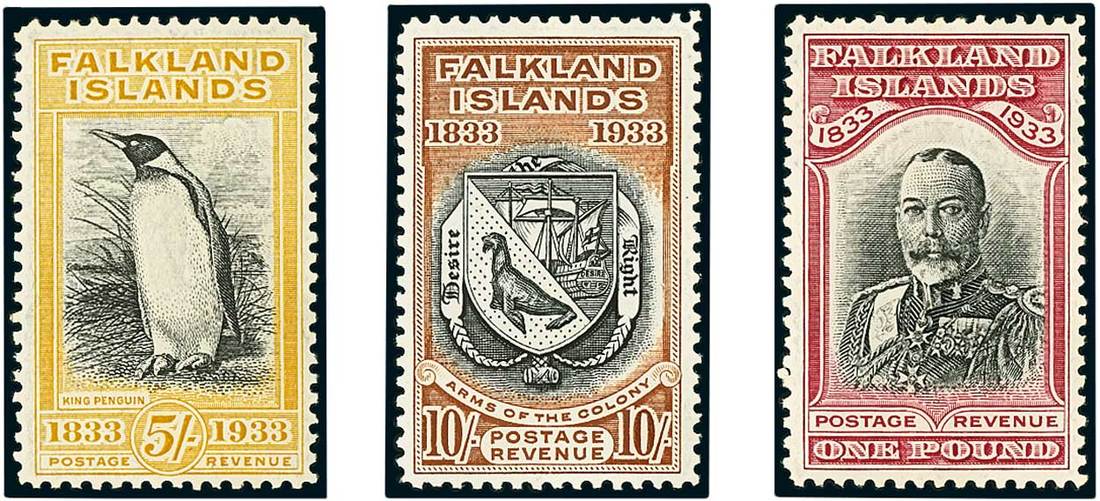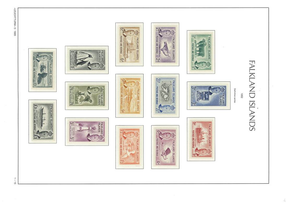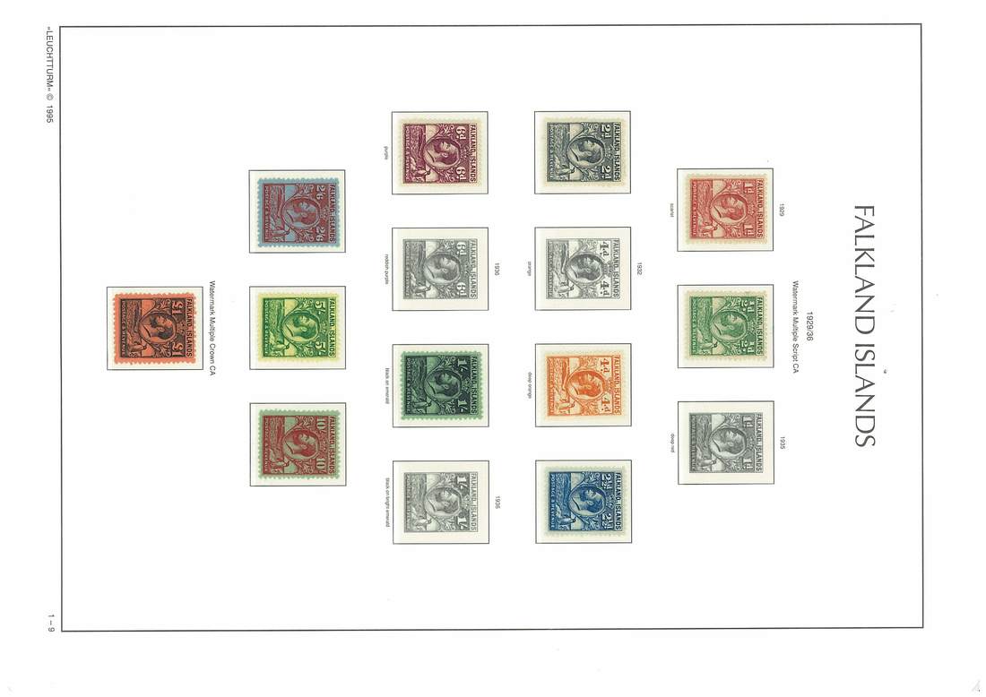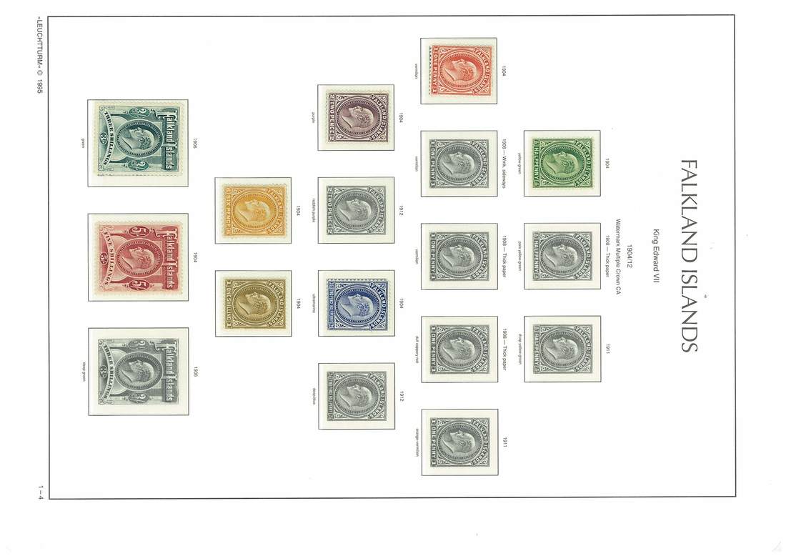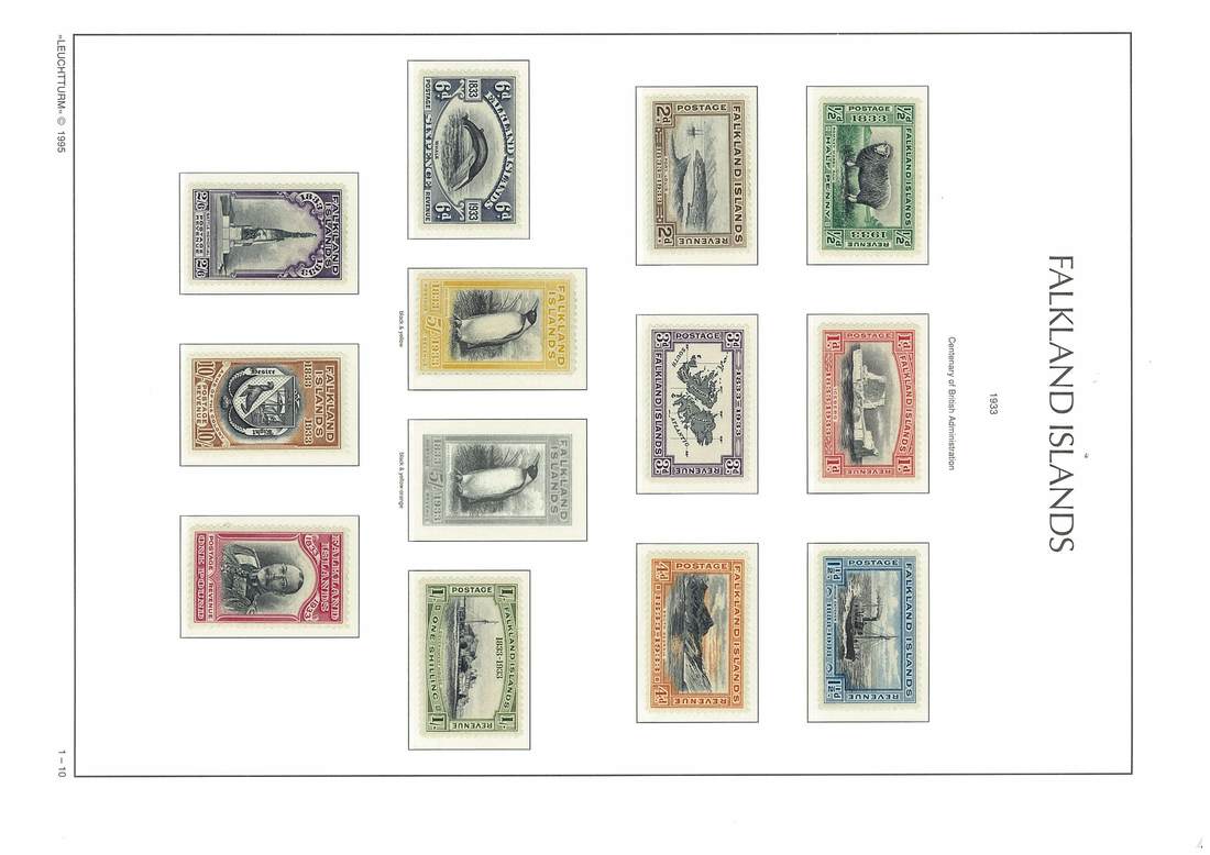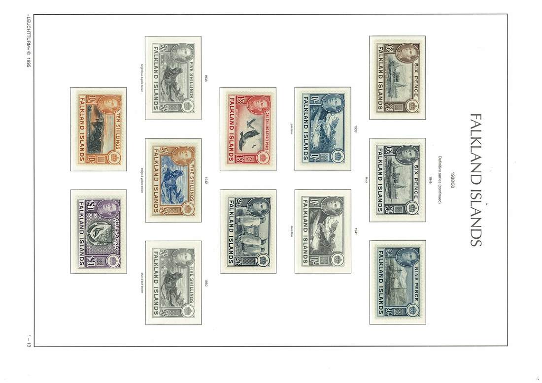 Lots and CollectionsFalkland Islands1896-1971, a mint collection comprising 250 stamps, including better values with 1898 2s.6d. & 5s., 1904 5s., 1914 £1, 1929 £1, 1933 Centenary complete set, 1938-50 set, etc.; as well as Dependencies from 1944. Very fine and attractive. Viewing essential. Photo