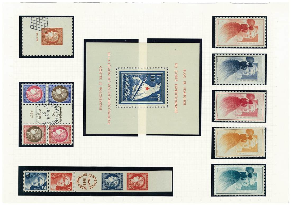 Lots and CollectionsFrance and Colonies1917-50, few hundreds unused (with some exceptions used), including 1917-18 Orphans set used, few better semi-modern sets and values with 1923 Bordeaux Congress mint, souvenir sheets with Strasbourg 1927 used; the Colonies including St. Pierre et Miquelon from 1892 unused. A very fine assembly with viewing recommended. Photo