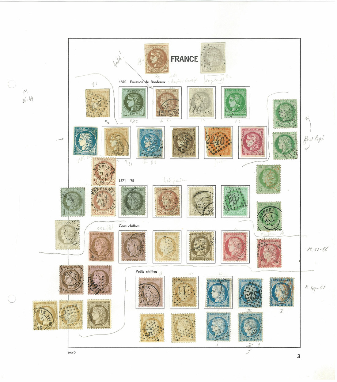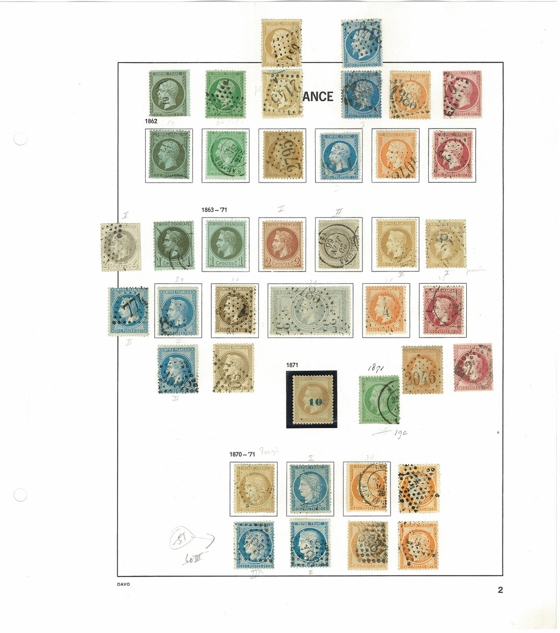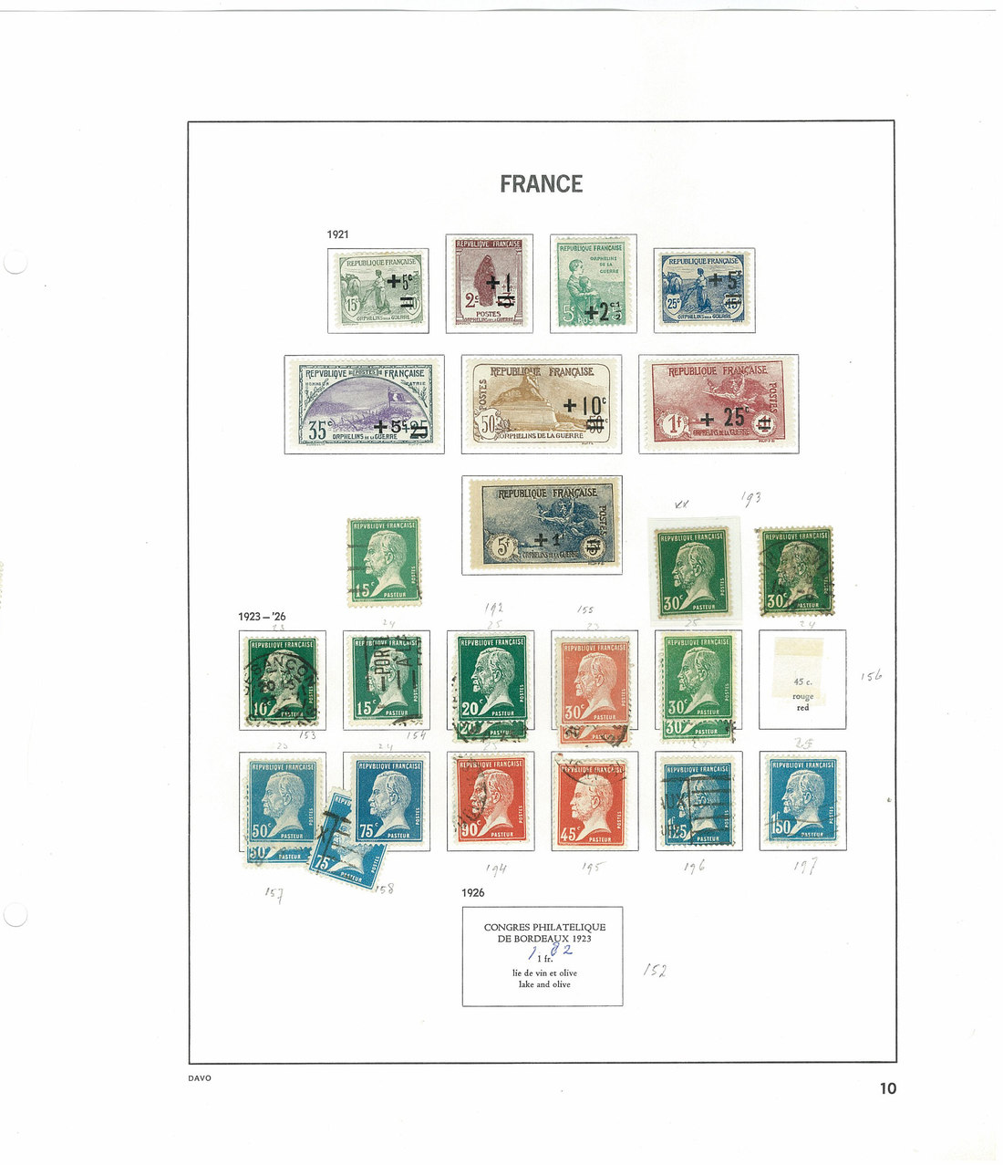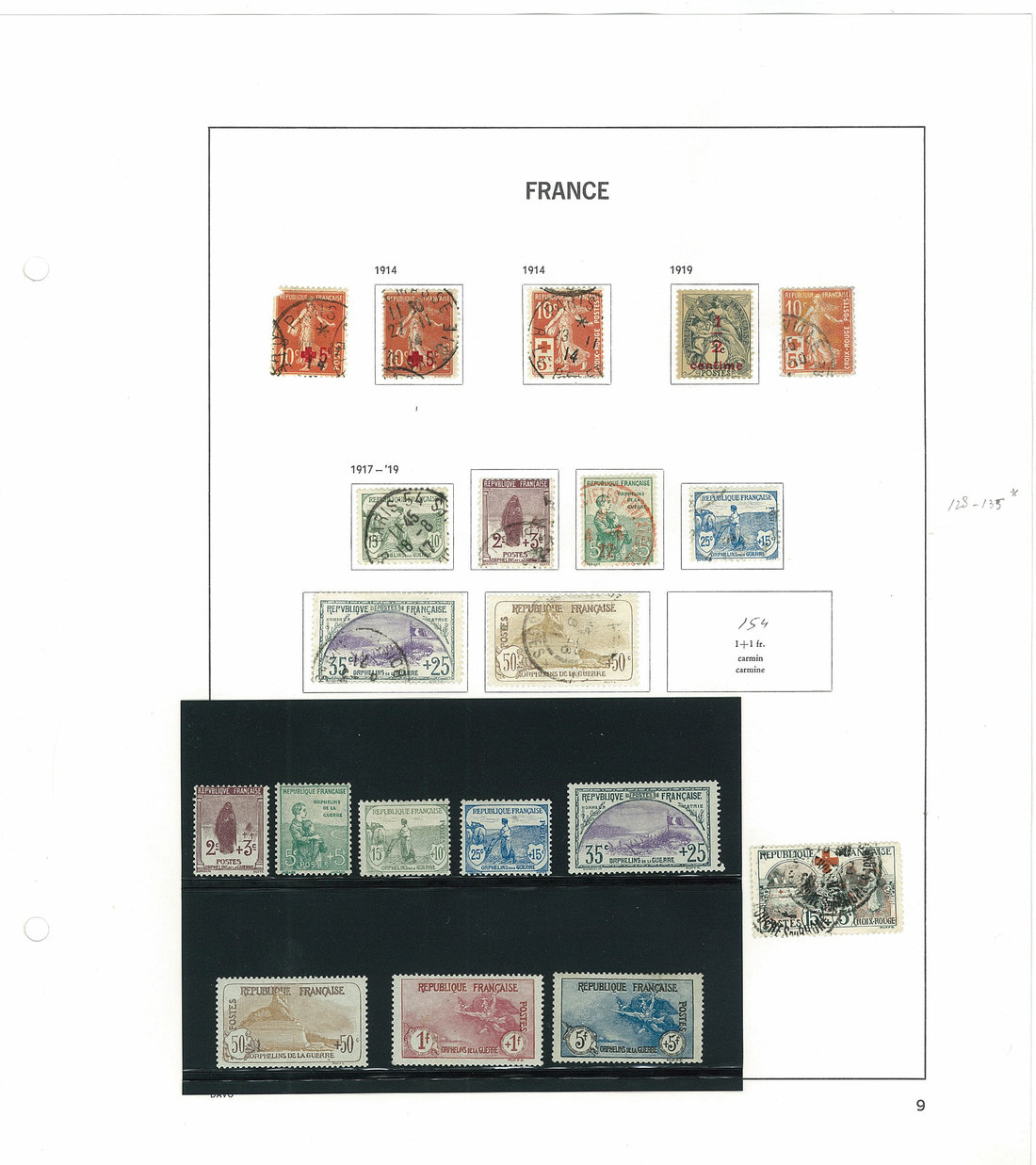 Lots and CollectionsFrance1849-1975, collection housed in one album comprising hundreds, used and unused, including few classics with first issue 15c. used, 1867 5fr. used, 1871 "10" on 10c. mint; 1917-18 "Orphelins" set mint, 1923 Bordeaux Phil. Congress 1fr. on cover, 1929 Le Havre Exhibition on piece, airmails, etc. Viewing essential. Photo