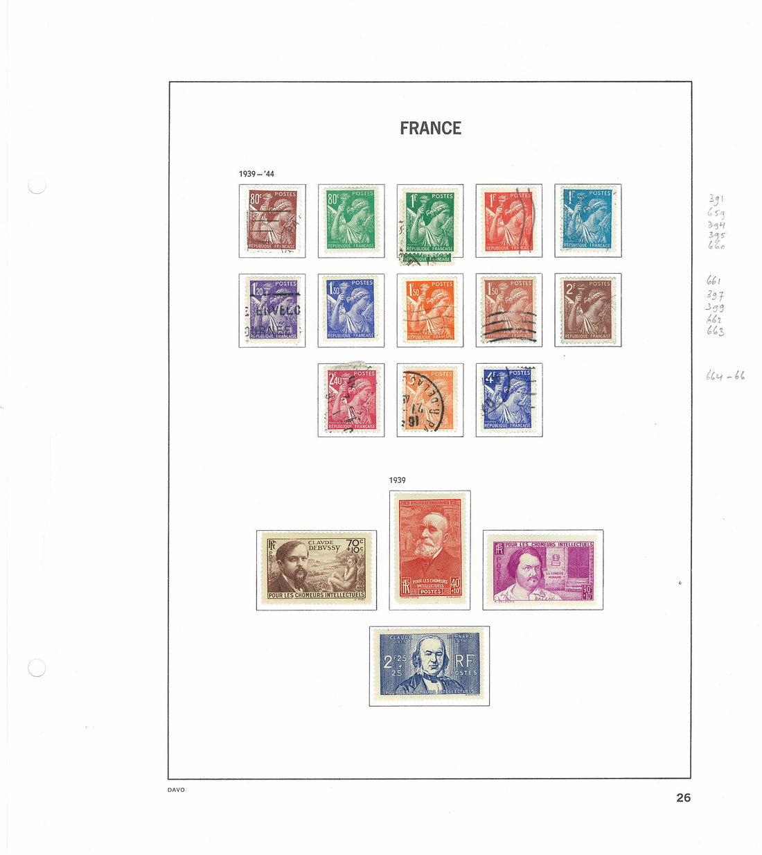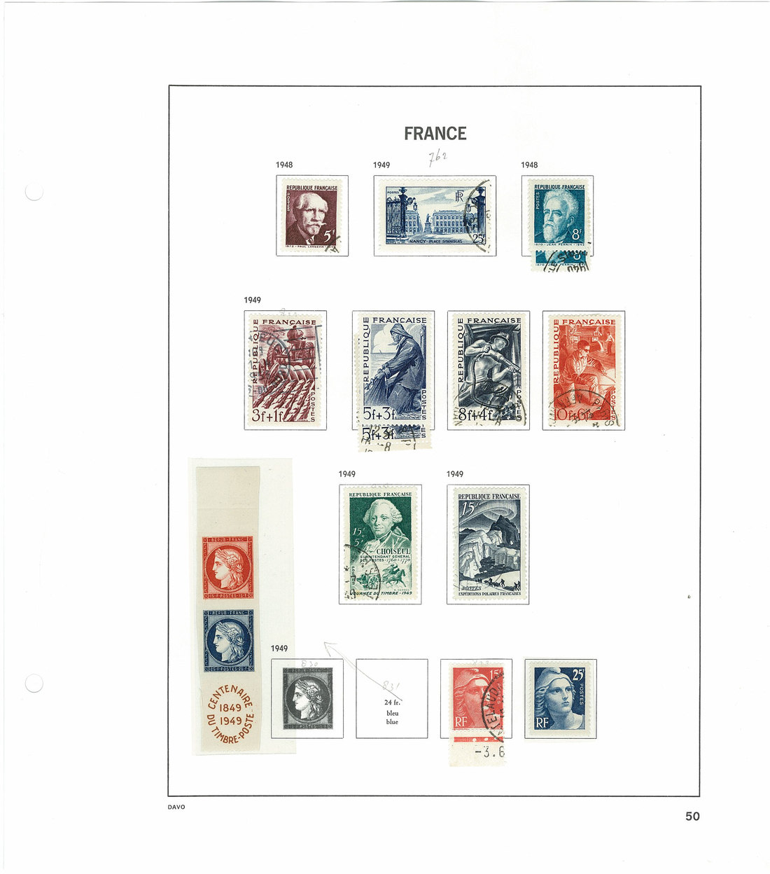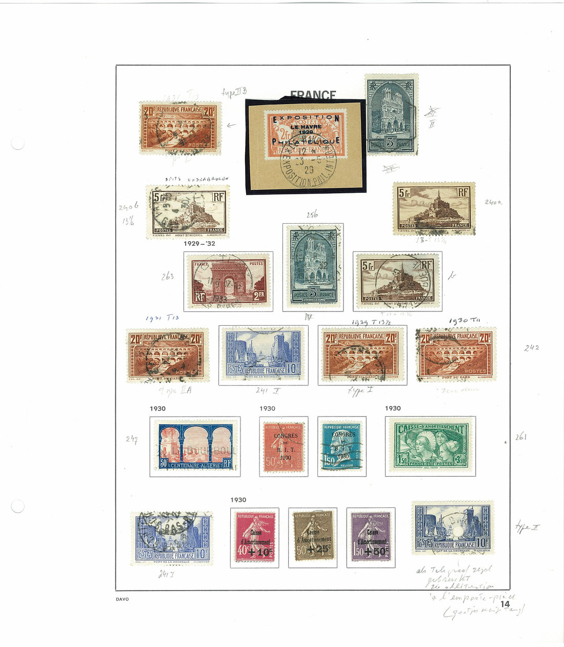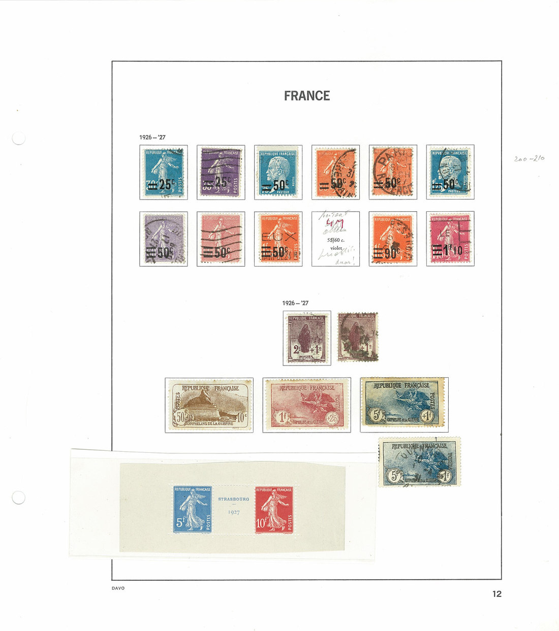 Lots and CollectionsFrance1849-1975, collection housed in one album comprising hundreds, used and unused, including few classics with first issue 15c. used, 1867 5fr. used, 1871 "10" on 10c. mint; 1917-18 "Orphelins" set mint, 1923 Bordeaux Phil. Congress 1fr. on cover, 1929 Le Havre Exhibition on piece, airmails, etc. Viewing essential. Photo