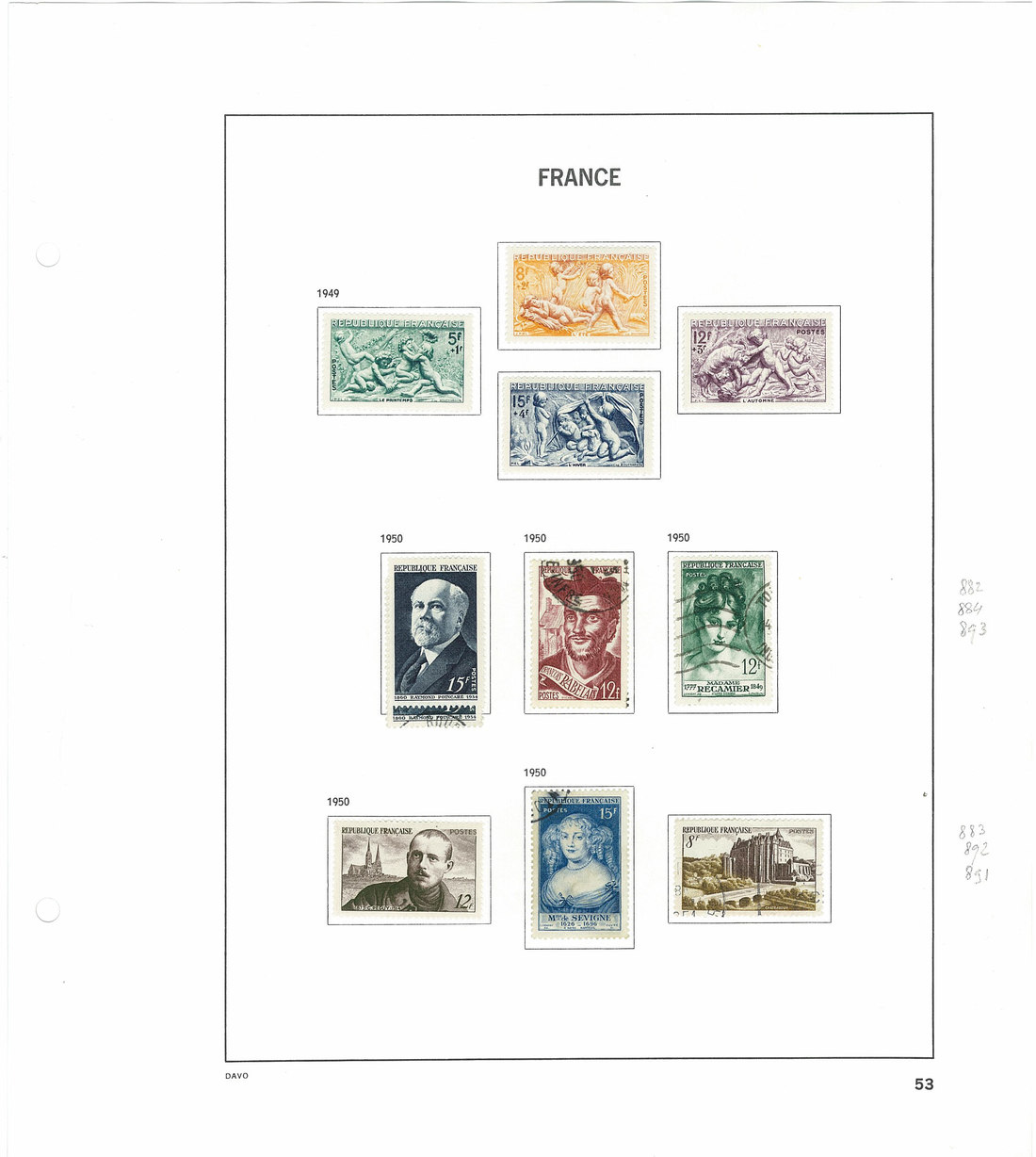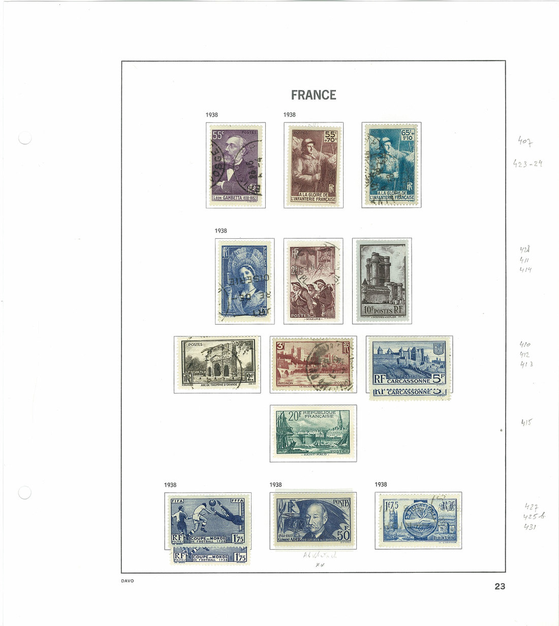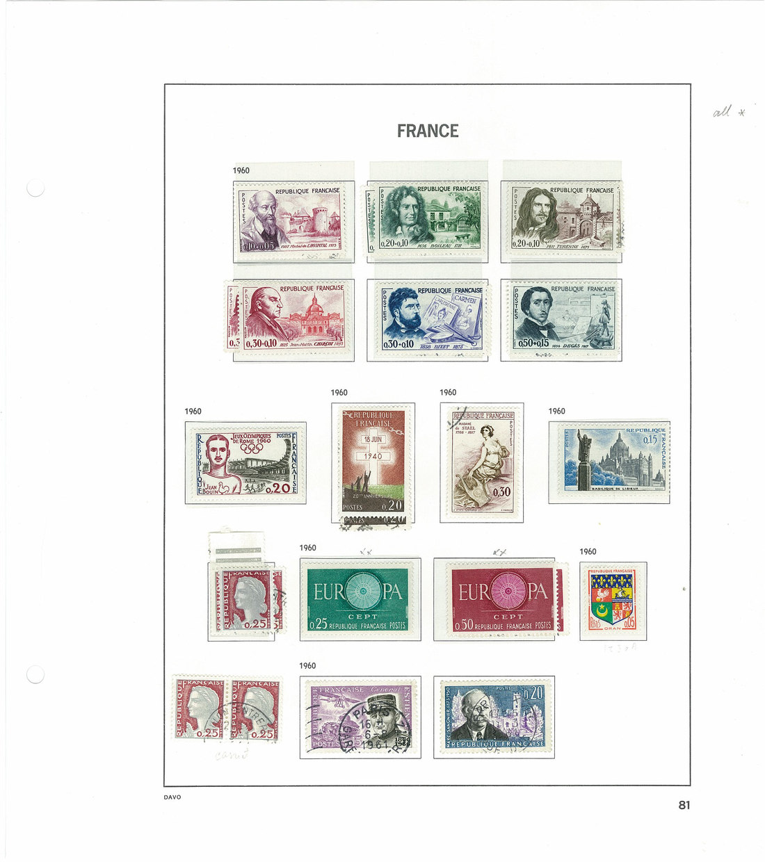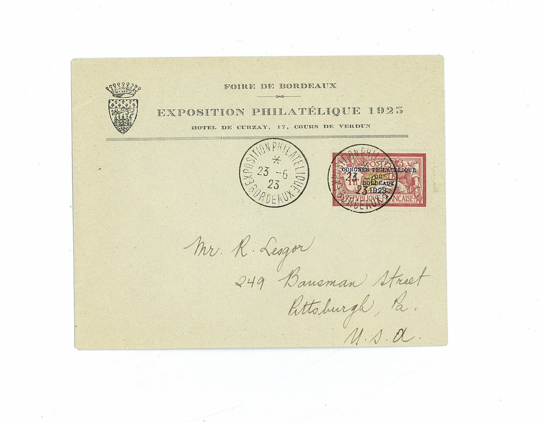 Lots and CollectionsFrance1849-1975, collection housed in one album comprising hundreds, used and unused, including few classics with first issue 15c. used, 1867 5fr. used, 1871 "10" on 10c. mint; 1917-18 "Orphelins" set mint, 1923 Bordeaux Phil. Congress 1fr. on cover, 1929 Le Havre Exhibition on piece, airmails, etc. Viewing essential. Photo