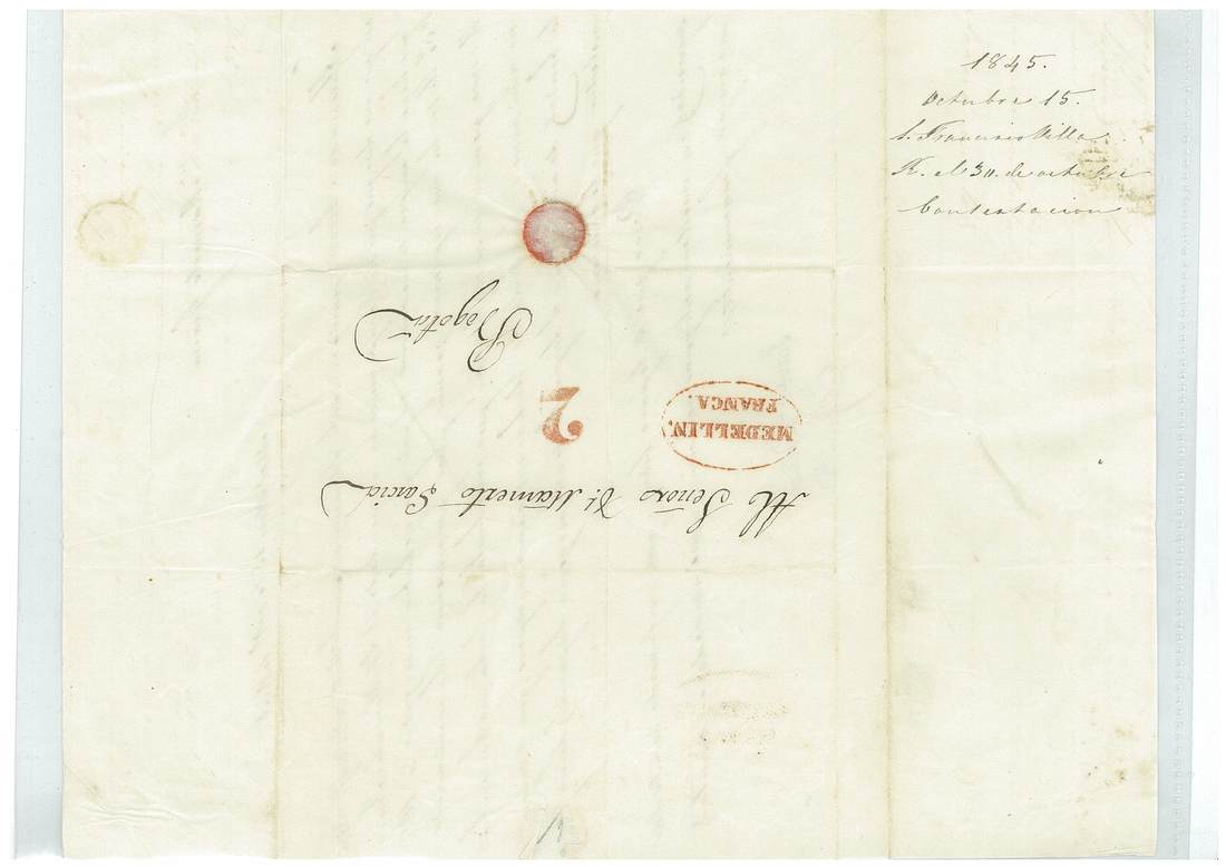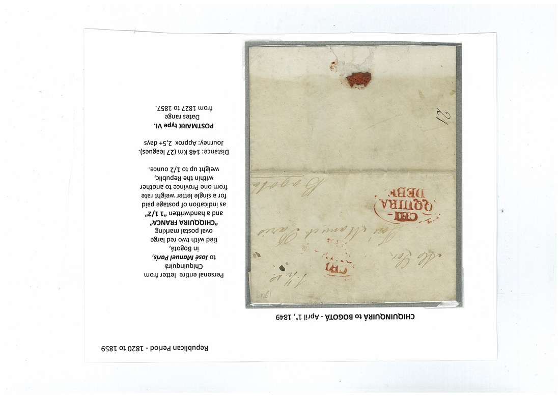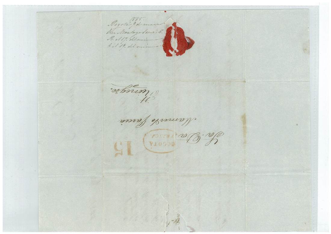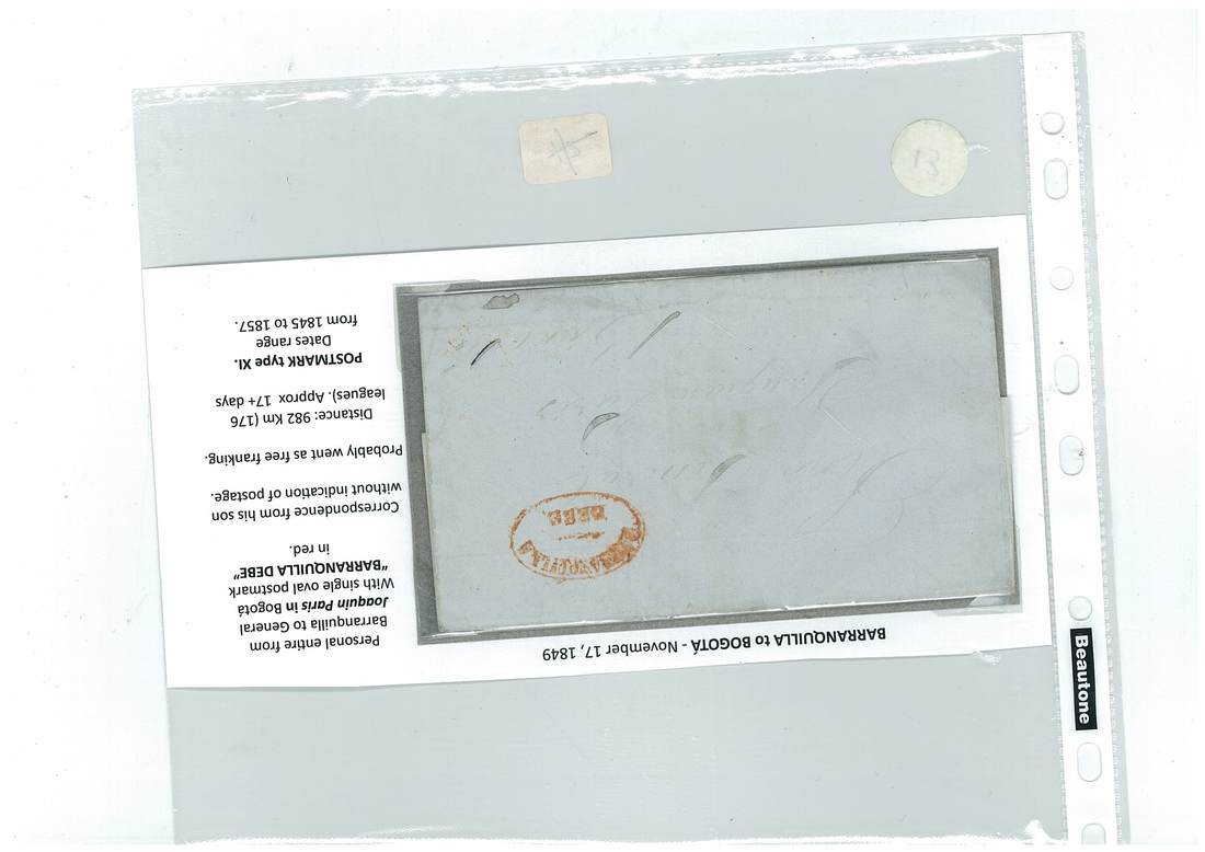 ColombiaStampless MailIndependent Republic Period1845-65 ca. Assembly comprising 42 entire letters with small ovals, mainly from the Mamerto García archive, with usages from Chiquinquirá, Barranquilla, Bucaramanga, Rionegro, Antioquia, Bogotá, Buga, Cartagena, Cartago, Honda, Medellín, Mompós, Naré, Neiva, Pamplona, Popayán, Socorro, Santa Marta and Villeta, including a good variety of rates with their corresponding markings and mail addressed to General Mosquera and José Hilario López as President of the Republic.