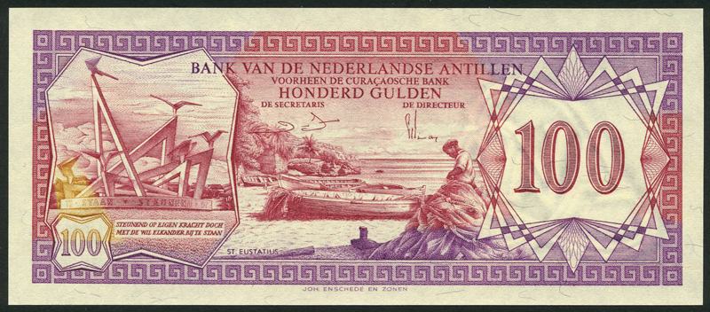 Netherlands Antilles, 100 gulden, 1981, red-brown and Aruba, 100 florin, 1986, green