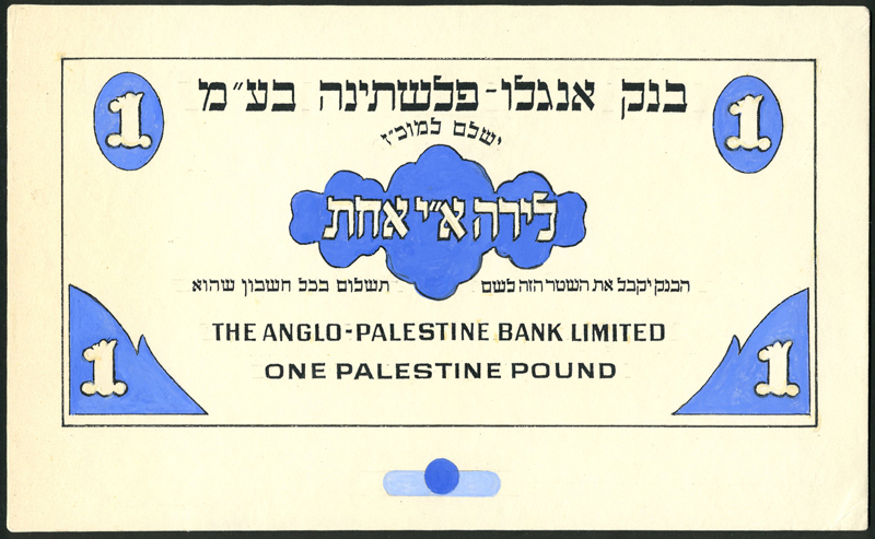 Anglo-Palestine Bank Limited, a hand executed composite proof uniface £1, ND (1948), black text on white with value in blue on large format board, value at centre and at each corner